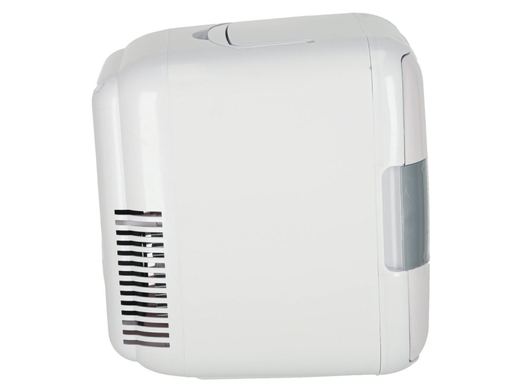Bijeli putni hladnjak s ergonomskim dizajnom održava temperaturu hlađenih i zagrijanih proizvoda. Može se priključiti na običnu električnu utičnicu ili utičnicu upaljača za cigarete.