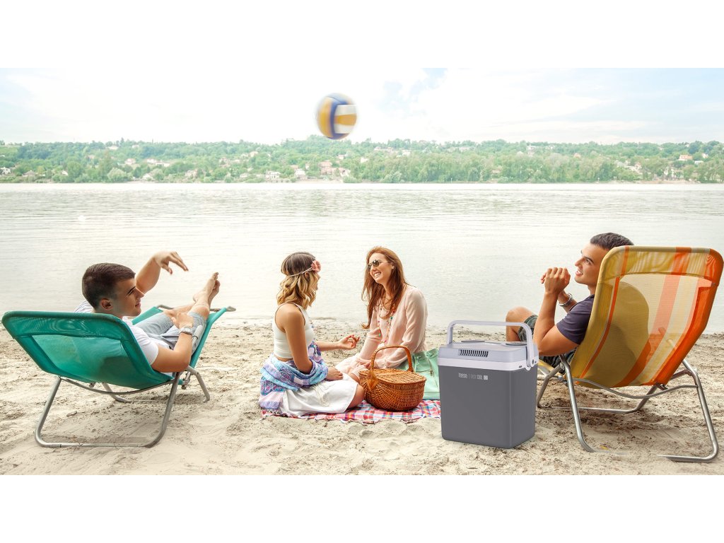 Razmišljate koji putni hladnjak kupiti Teesa EASY COOL A25 je idealan za vruće ljetne dane i zimske izlete. Omogućuje hlađenje hrane do 6 °C ili grijanje do +65 °C, ovisno o vanjskim uvjetima. Stoga je idealan uređaj za hlađenje hrane tijekom ljetnog piknika, kao i za pohranu toplih napitaka tijekom zimskih hladnoća.