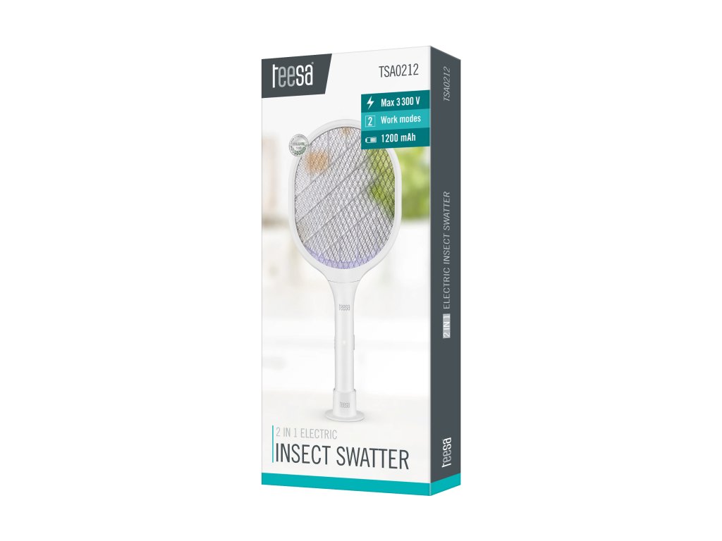 Električna palica za insekte Teesa idealna je za ručno hvatanje i trenutnu neutralizaciju insekata. Dovoljno je pogoditi insekt i visokonaponska mreža ga odmah neutralizira. Kada postaviš zamku na način rada lampe, uređaj emitira UV svjetlo koje učinkovito privlači insekte poput komaraca, muha ili moljaca. Po kontaktu s mrežom, insekt je odmah neutraliziran.