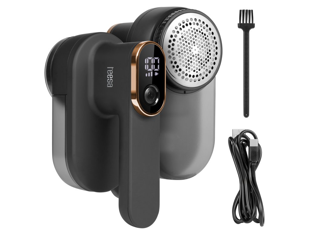 Komplet strojeva Teesa sadrži i praktične dodatke. Četkica za čišćenje omogućuje vam temeljito uklanjanje ostataka tkanina s oštrica, što produžuje vijek trajanja uređaja, USB-C kabel za punjenje i poklopac koji štiti oštrice tijekom skladištenja.