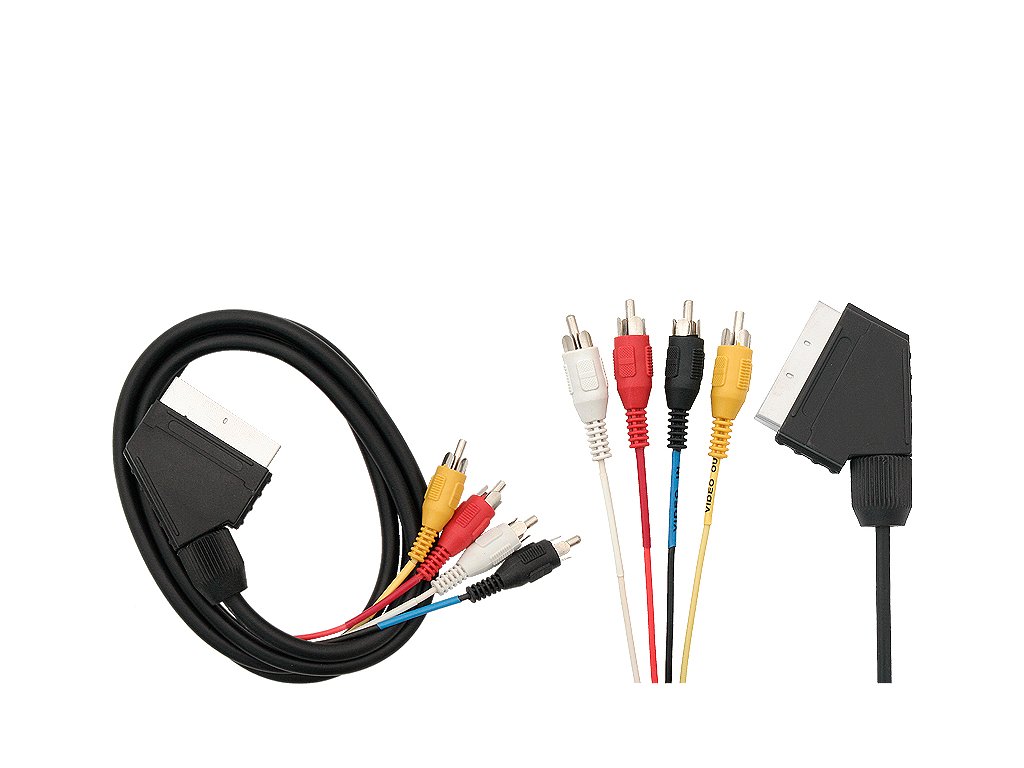 Visokokvalitetni EURO - 4RCA konektor, koji se obično koristi u audio i video uređajima za povezivanje analognih uređaja starije generacije, na primjer, satelitskog prijamnika s EURO konektorom s televizorom ili drugim uređajem s RCA konektorima.