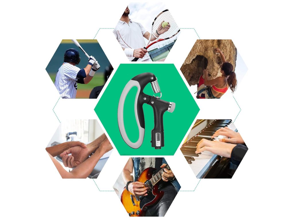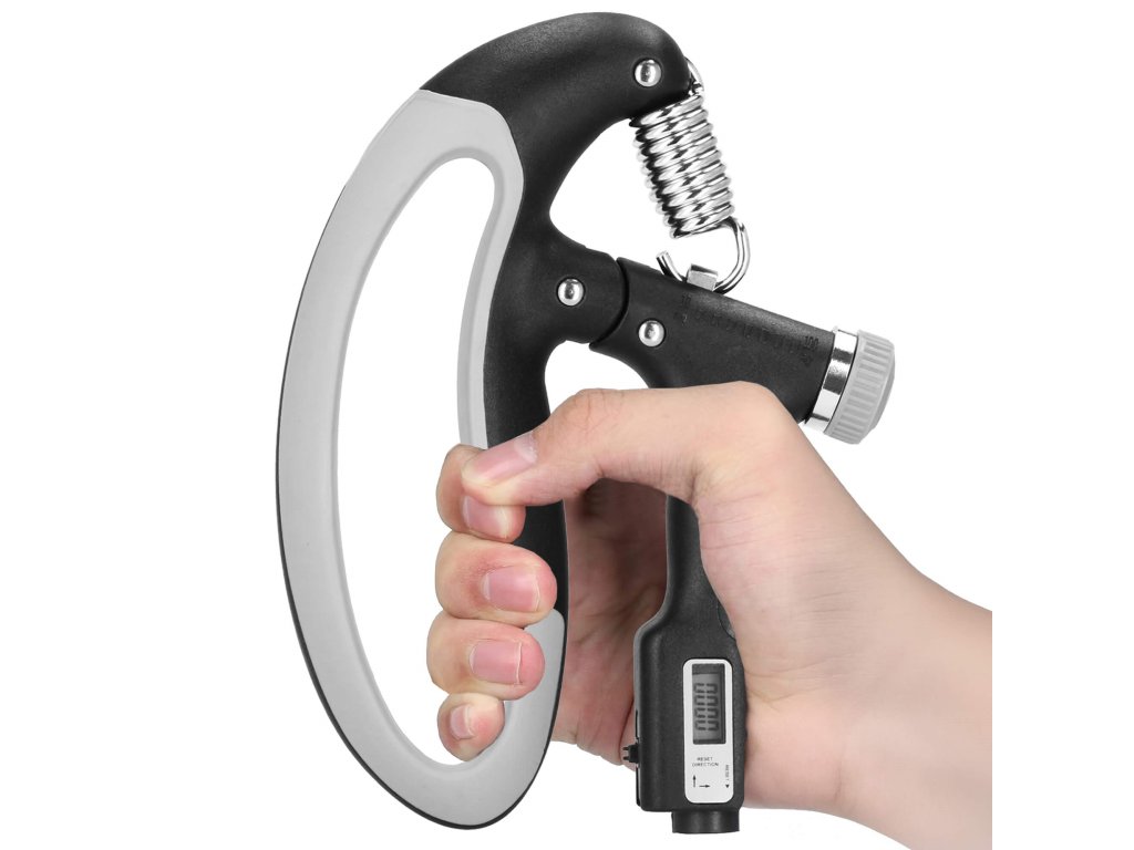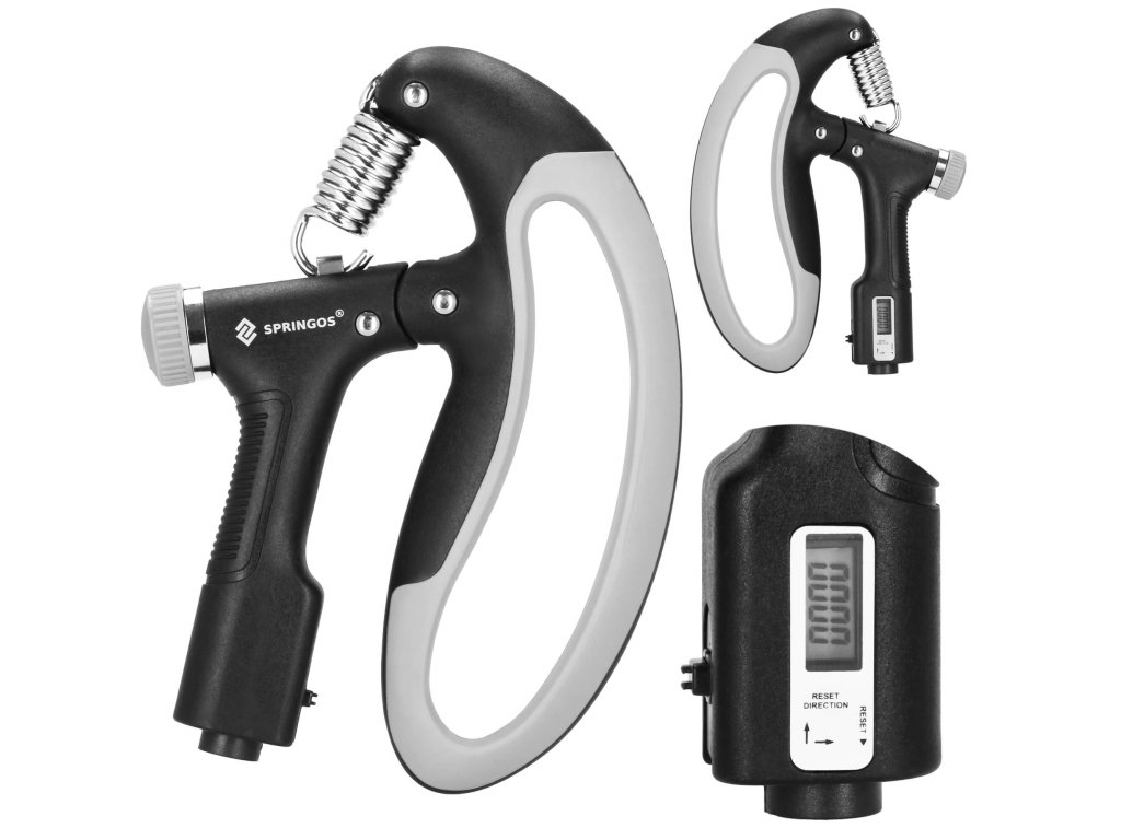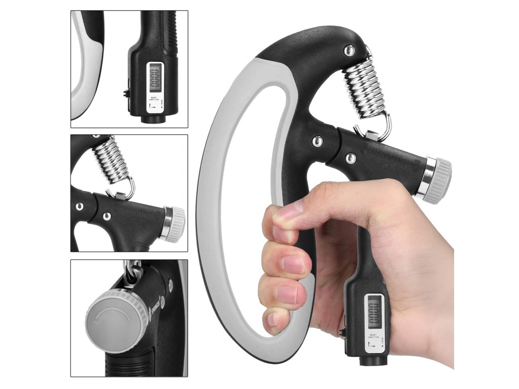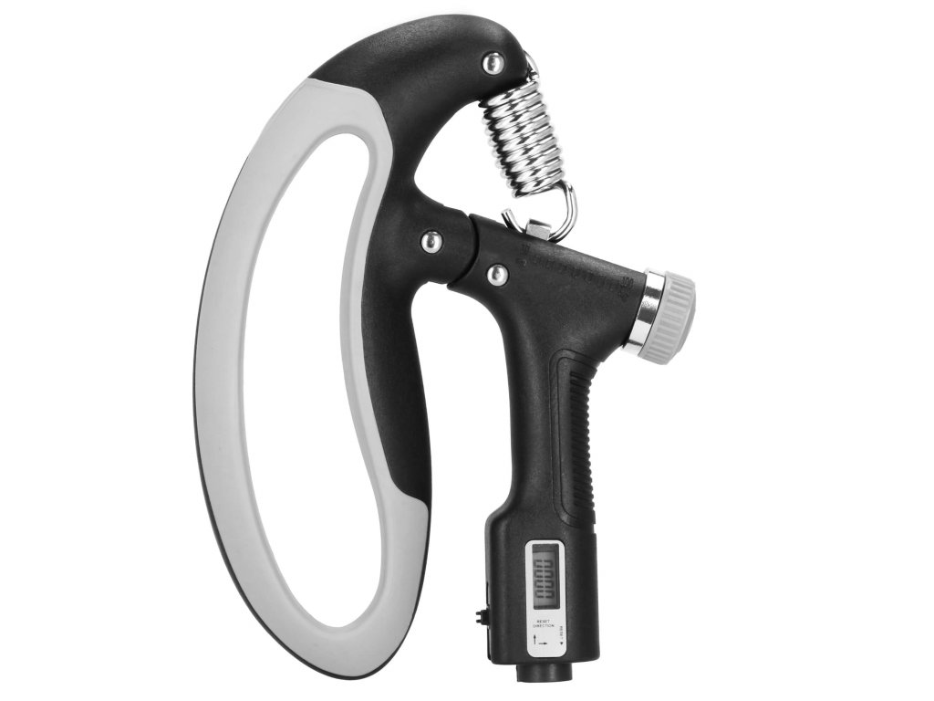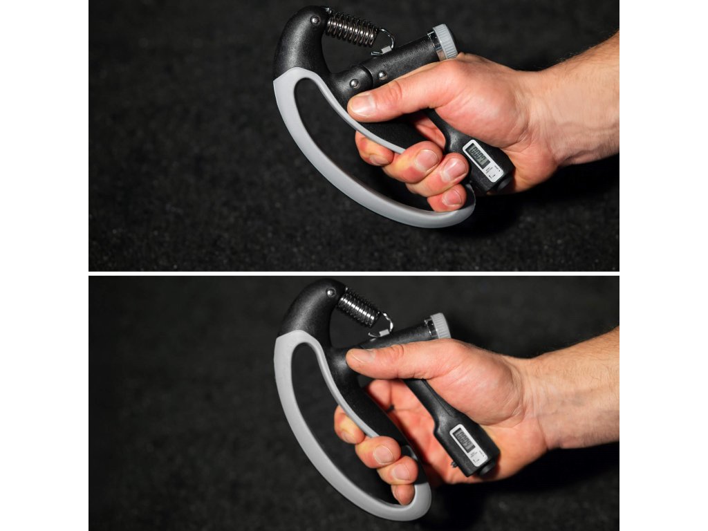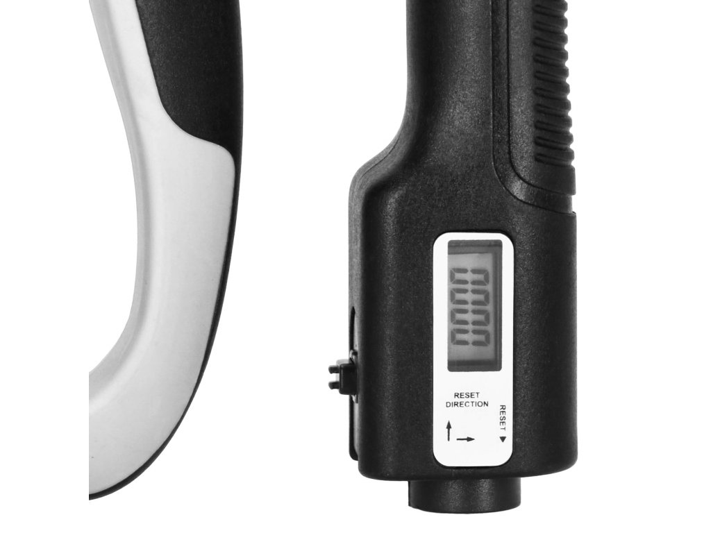 - Brojač pokreta pokazuje koliko je puta stisak izveden - brojač s tekućinskim zaslonom, resetira se pomoću gumba na dnu ručke