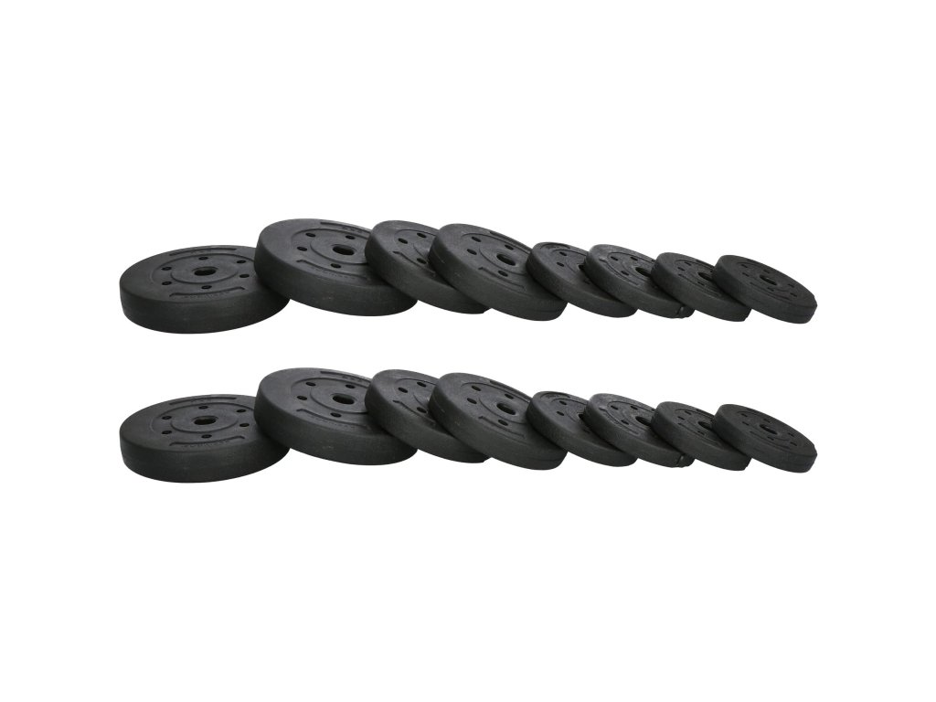 - 2x disk 5kg - promjer: 25,5 cm / debljina 4,5 cm / promjer otvora: 3 cm