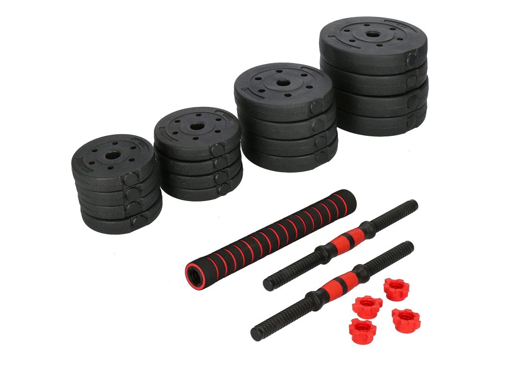 - 2x ploča 5 kg - promjer: 25,5 cm / debljina: 4,5 cm / promjer otvora: 3 cm