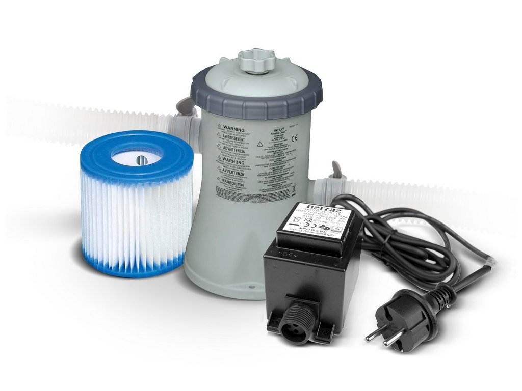 Filtracijska pumpa Intex. To je uređaj koji pomaže održavati čistu vodu u bazenu, dok radi s kapacitetom od 1250 litara/sat. Namijenjeno za prijenosne bazene 244/305 cm i bazene s okvirom 305 cm.