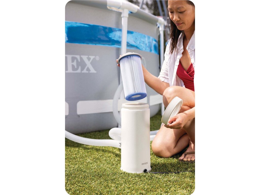 Pumpa za filtriranje za bazen 3785 l/h model 2025! INTEX 26638 serija C1000 Ako želite uživati u kristalno čistoj vodi u bazenu, svakako morate investirati u pumpu za filtriranje od stručnjaka za vrtne bazene. Sve pumpe tvrtke Intex opremljene su sustavom zračenja vode, zahvaljujući kojem je voda još čišća. Kupnjom pumpe za bazen na ovoj aukciji, dobivate sve elemente potrebne za montažu u kompletu. Pumpa se napaja standardnim naponom od 220-240V. Uživajte u čistoj vodi bez napora Glavne značajke: kapacitet 3785 litara vode na sat, snaga 220-240V, zamjenjivi moderni kartušni filter tipa A, u kompletu elementi za instalaciju (cijevi i spojevi), preporučuje se za bazene promjera 427, 457 cm, preporučuje se za pravokutne bazene dimenzija: 488 x 244 cm jednostavno korištenje, laka instalacija, opremljen tehnologijom Hydro Aeration. Poboljšani filter = poboljšana filtracija Pumpa za filtriranje 26638 opremljena je zamjenjivim modernim kartušnim filterom tipa A. To je papirnati filter koji ima mikro otvore za hvatanje sitnih nečistoća. Ovaj model pumpe ističe se filtracijskim uloškom s debljim, težim papirom i većim brojem nabora. Odabirom proizvoda Intex dobivate jamstvo da kupujete od profesionalca. Hydro Aeration Technology Intex donosi revoluciju u vrtne bazene — zračenje vode tijekom njezine filtracije, dostupno u svim pumpama ovog proizvođača. Milijuni mjehurića zraka stvoreni su od strane pumpe, čineći vodu jednostavnijom za čišćenje i filtriranje. Sitne čestice spajaju se u veće skupine i talože na dnu bazena što ih čini lakšim za uklanjanje. Tijekom ovog procesa dolazi do oksidacije željeza i magnezija, što vodi daje bolju prozirnost. Proces zračenja povećava broj negativnih iona, što pomaže u neutralizaciji slobodnih radikala i zagađivača. Sadržaj kompleta: pumpa za filtriranje, zamjenjivi filter kartuše tipa A, 2 cijevi za spajanje, 4 stezaljke, rešetke za bazen, upute na poljskom jeziku. Tehnički podaci: Kapacitet: 3785 litara/sat Napajanje: 220 - 240 V Težina: 3,87 kg Zamjenjivi filter tip AAdditional parameters
