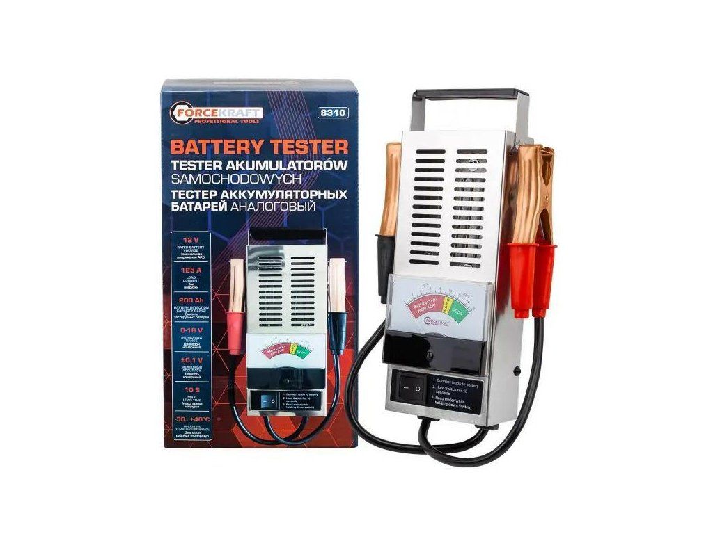 Analogni tester akumulatora je praktičan i pouzdan alat namijenjen brzom ocjenjivanju tehničkog stanja olovno-kiselinskih akumulatora s naponom 6 V i 12 V i kapacitetom do 100 Ah. Uređaj omogućava brzu procjenu stanja akumulatora, razine njegove napunjenosti, učinkovitosti i spremnosti za daljnje korištenje – bez potrebe za korištenjem napredne dijagnostičke opreme.