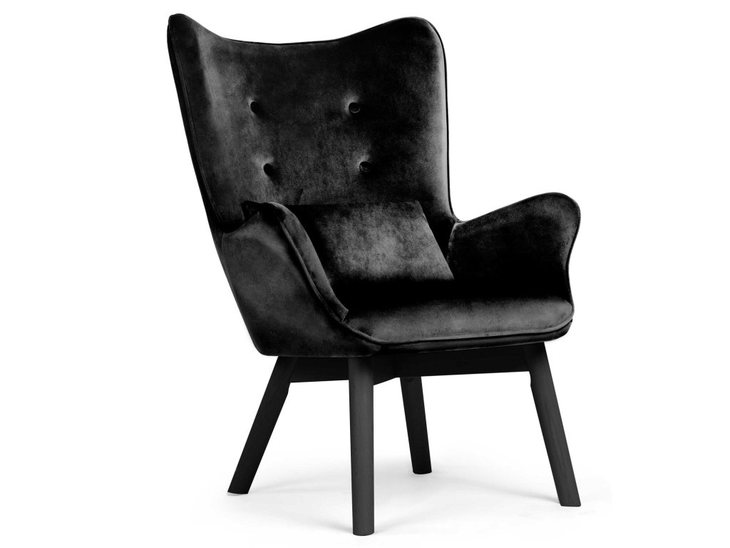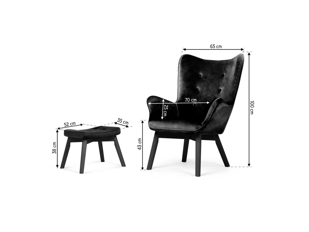 Crna wingback fotelja s osloncem za noge