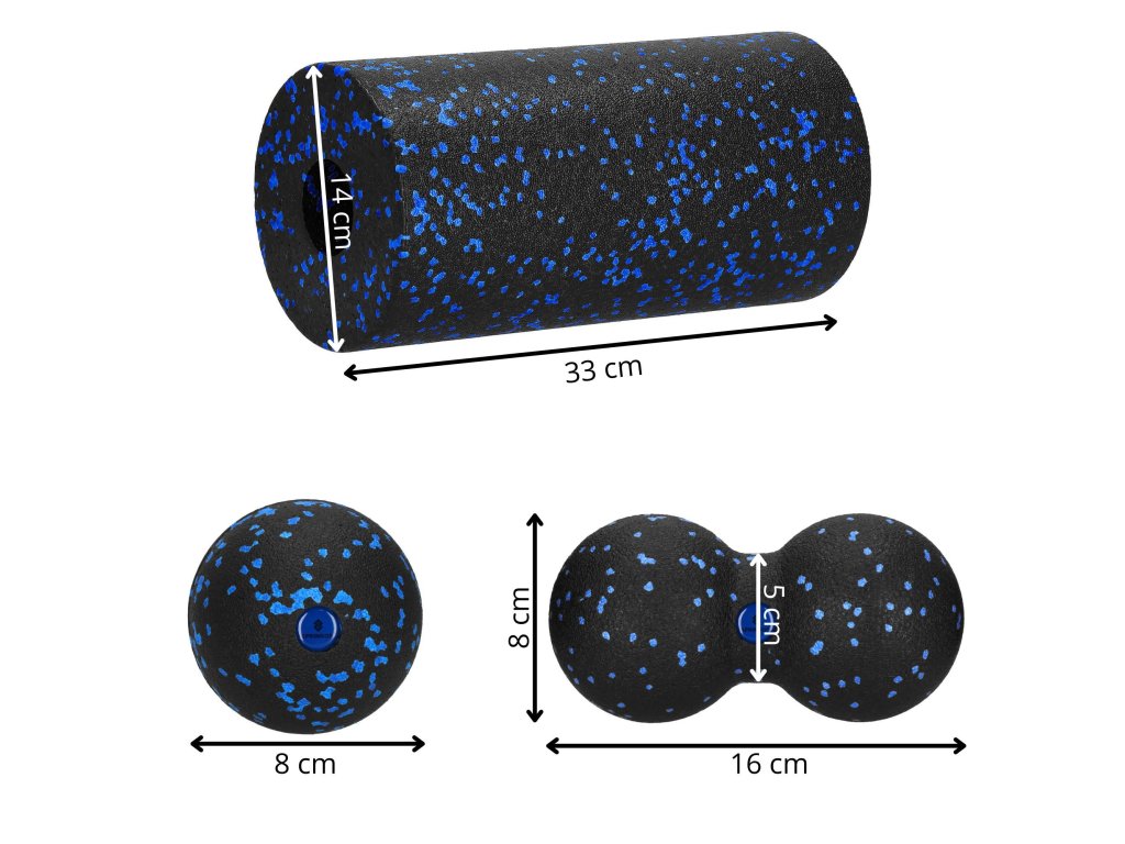 - Uključeno u paket: masažni valjak, masažer u obliku kugle, masažer u obliku dvostruke kugle, torba.