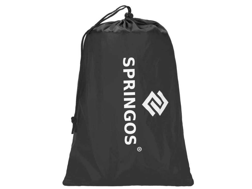 - Torba od umjetne tkanine u crnoj boji, s bijelim otiskom loga Springos