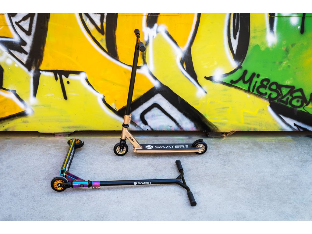 Romobil s velikim kotačima znači veću udobnost i veću brzinu, stoga model Skater Pro ima kotače od 110 mm. Također vrijedi istaknuti izdržljivu aluminijsku jezgru. Kod skakačkih romobila važna je i kvaliteta ležajeva, pa se u ovom modelu koristi najviša klasa - ABEC 9. Što je viša klasa, to je veća preciznost i mogućnost postizanja većih brzina.