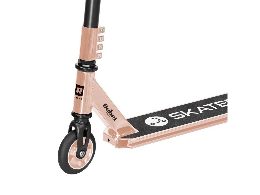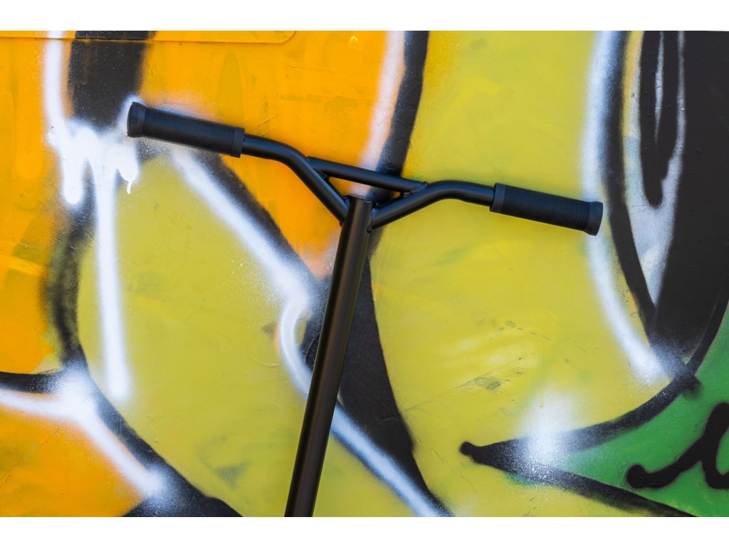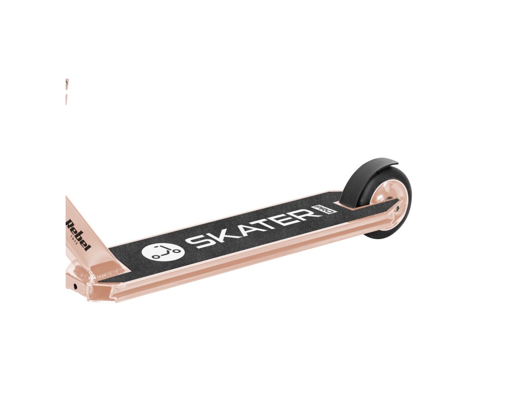 Freestyle romobil Rebel Skater Pro ima ručke u obliku slova Y. Ova vrsta je puno izdržljivija od T-ručka. Također vrijedi primijetiti protivklizne, žlijebne ručke izrađene od termoplastičnog materijala TPR, otpornog na habanje i koji prigušuje udarce.