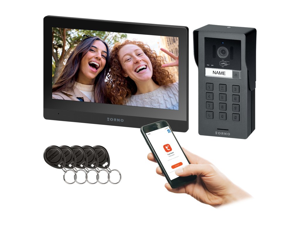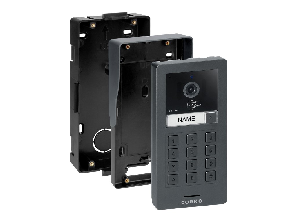 Aluminijska vanjska jedinica ima ocjenu IP65 i kišni poklopac, što osigurava izdržljivost. Ugrađena šifra ključanica i čitač RFID kartica i ključnih oznaka na 125 kHz omogućuju ulazak ovlaštenim osobama, a oznaka s imenom omogućuje gostima da lako pronađu pravu nekretninu bez rizika od zamjene. Set sadrži 5 ključnih oznaka.