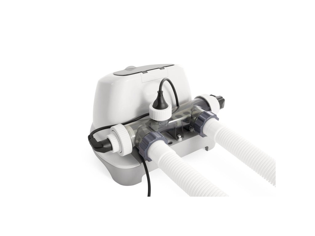 Generator klora za bazene 7 g/h## INTEX 26688## Upravo za vas Intex je pripremio nešto posebno: GENERATOR KLORA## Generator klora je ekološki prihvatljiv jer proizvodi prirodni klor.## Generator je savršen za osobe s osjetljivom kožom sklonom alergijama.## Njegova učinkovitost je neprocjenjiva! Pomoći će vam održati čistoću u bazenu kroz dulje razdoblje, a uz to je iznimno jednostavan za upotrebu.## Revolucija na tržištu!## Za proizvodnju prirodnog klora potreban je samo naš generator i kuhinjska sol.## Dovoljno je da u vodu u svom bazenu pospite običnu kuhinjsku sol.## Kada sol prolazi kroz generator, stvara se bezopasni, prirodni klor.## Štoviše, u tom postupku nastaju ioni koji će uništiti alge i bakterije.## Proizvod može proizvesti do 7 g klora na sat. Da bi generator ispravno radio, nužna je pumpa za filtriranje.## Glavne značajke:## generator klora## potrebni dodaci za povezivanje## ugrađeni 24-satni programabilni sat## Tehnički podaci:## Napajanje 220-240 V## Težina 9 kg## Zahtijeva pumpu 2 650 - 12 112 l/h## Učinkovitost 7 g/h## Maksimalna veličina bazena: 26 500 lDodatni parametri