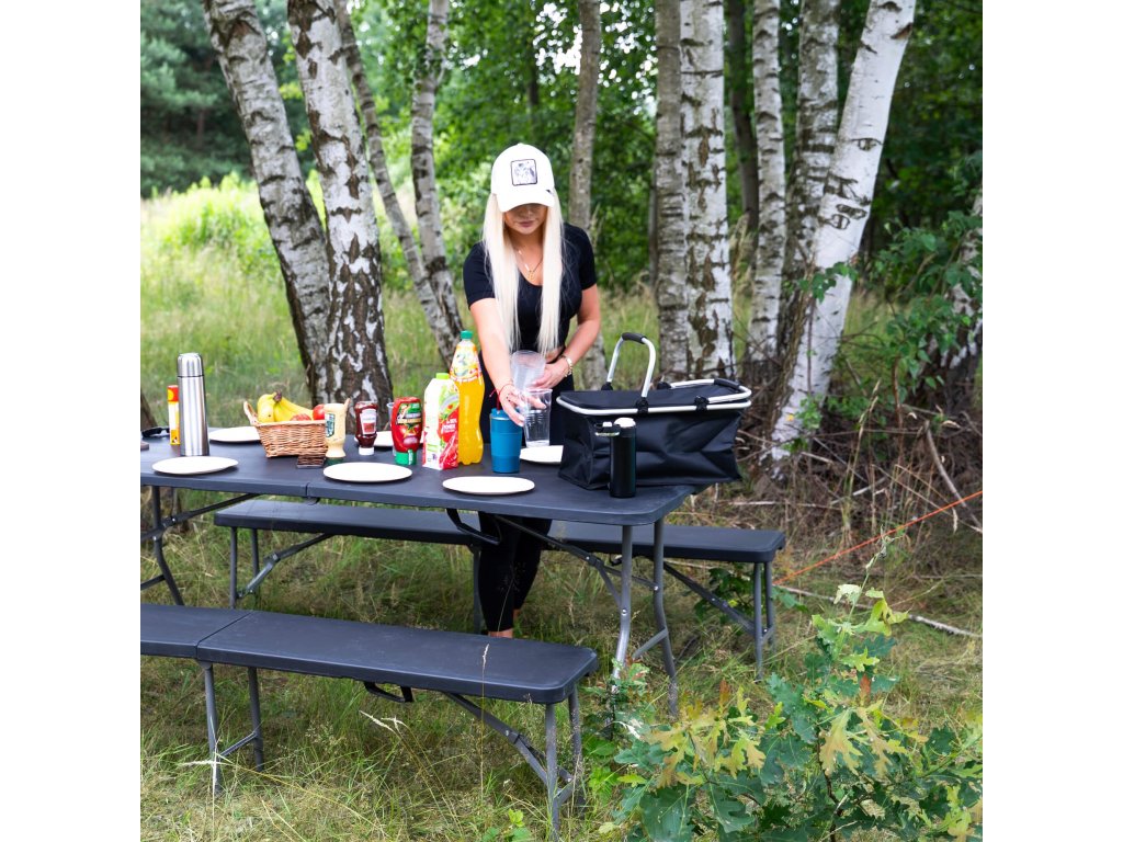 - Opremljena drškom za nošenje (crna, tkanina + guma)