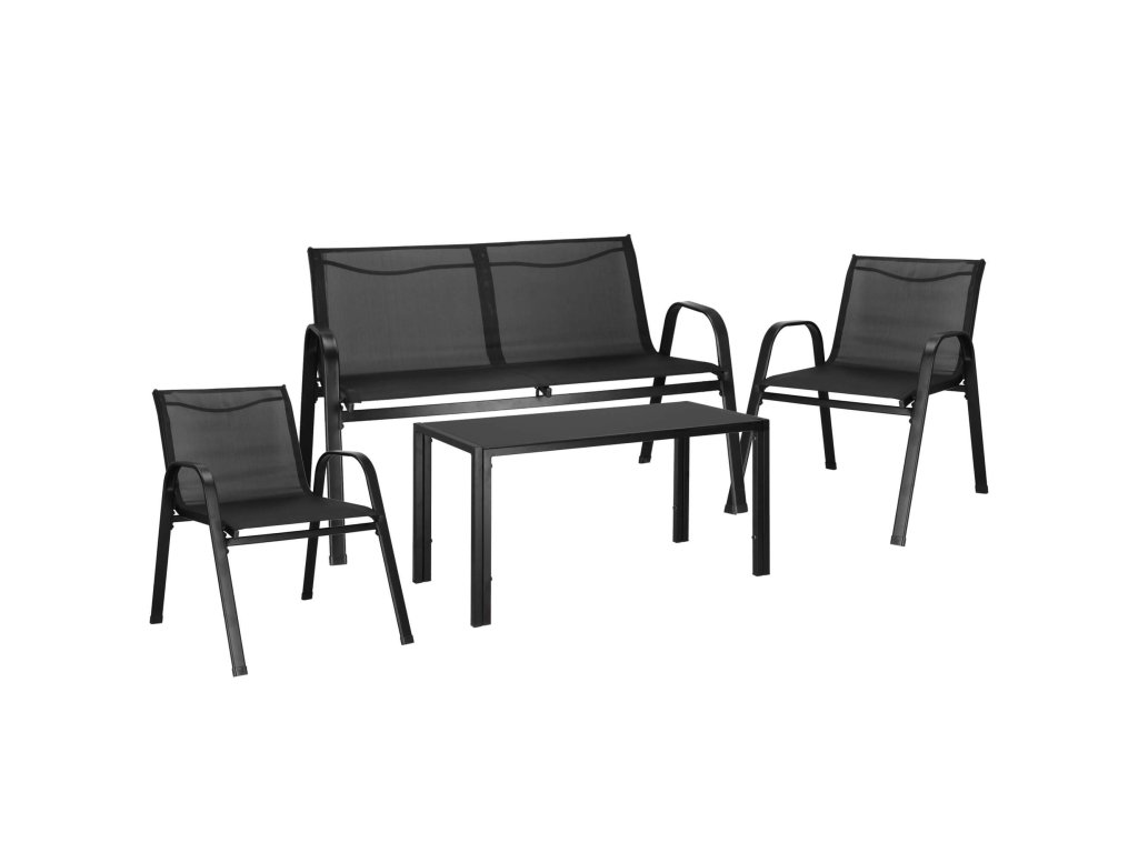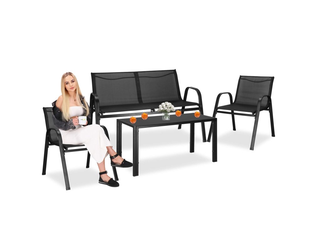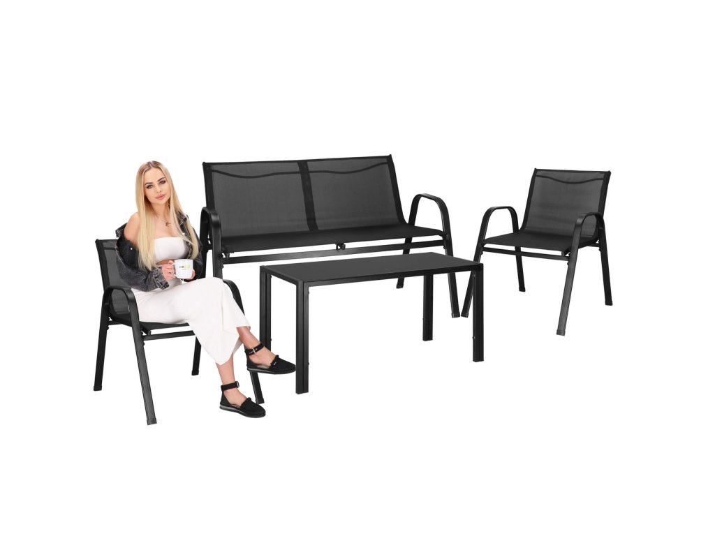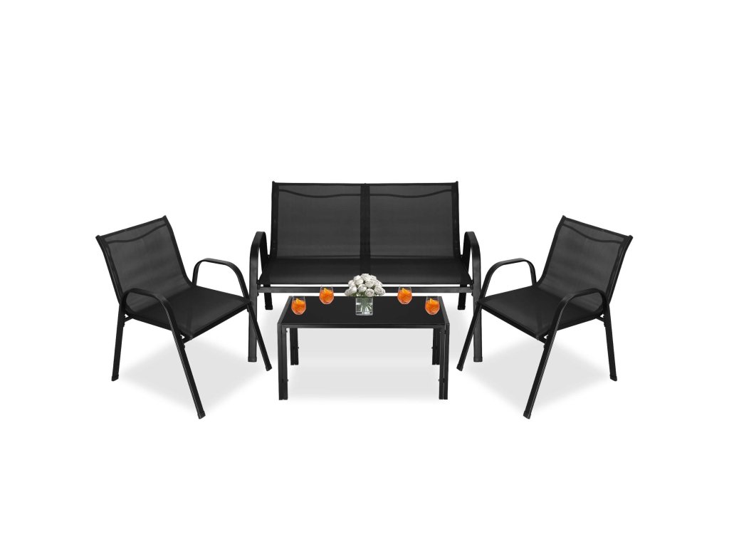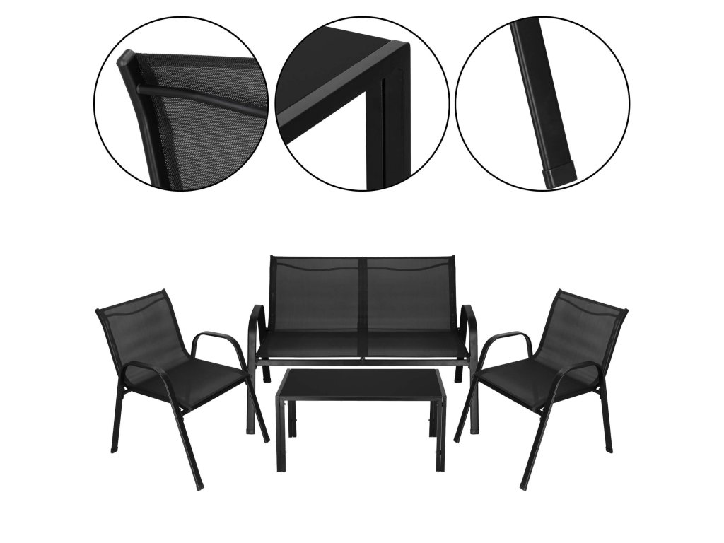 - Broj elemenata: 4 - stolić za kavu s crnim kaljenim staklom, 2x stolice, sofa