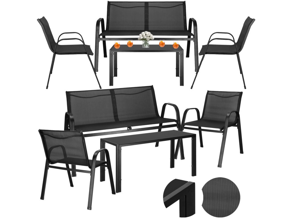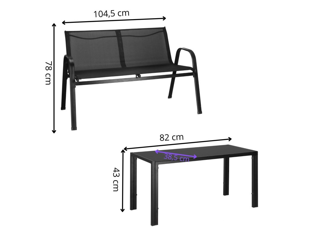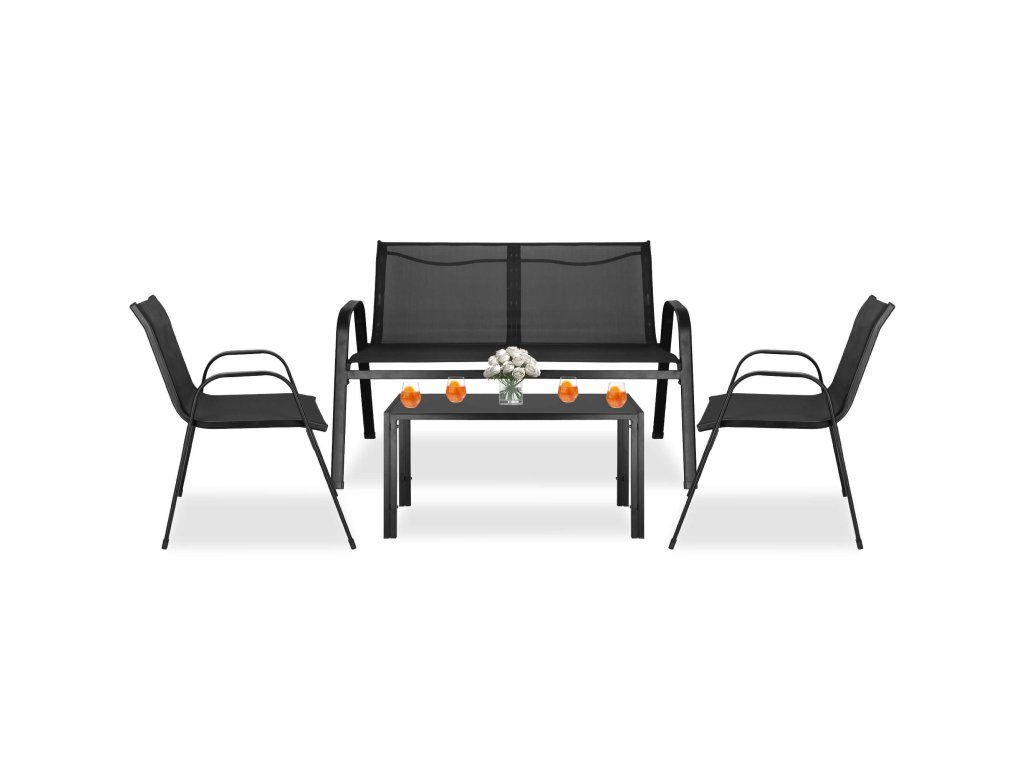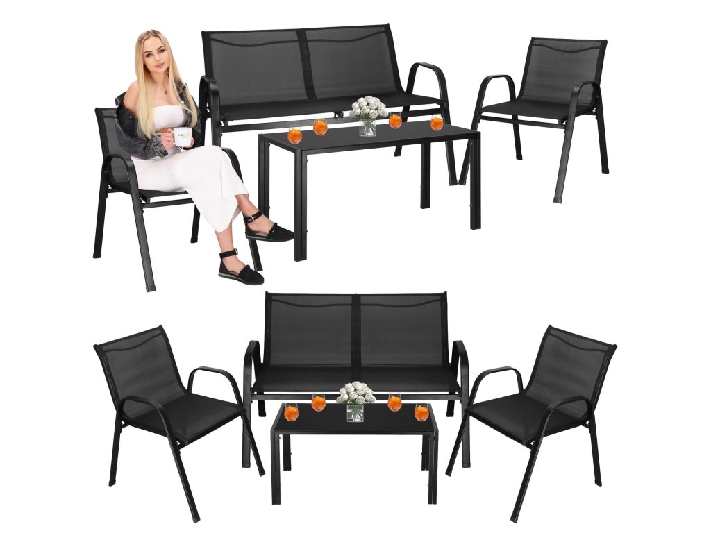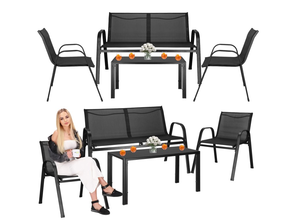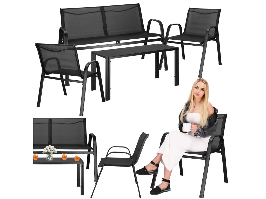 - Broj elemenata: 4 - stolić za kavu s crnim kaljenim staklom, 2x stolice, sofa