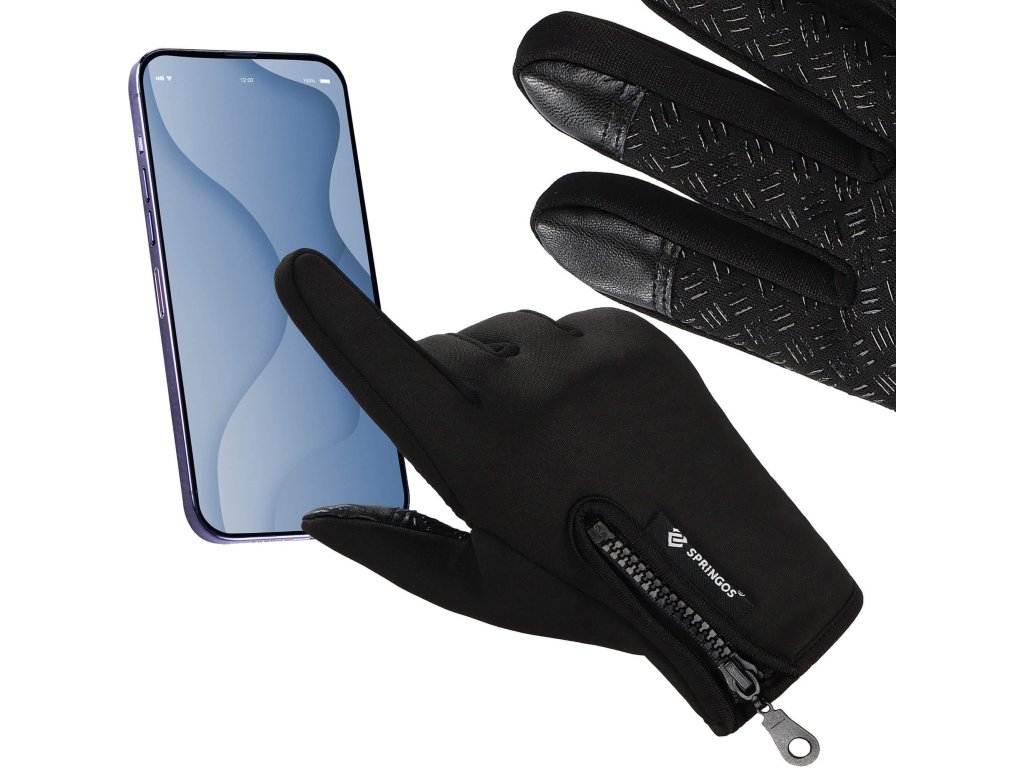 - Prednosti: protuklizni premaz s unutarnje strane dlana, premaz za dodir na dva prsta, patentni zatvarač za regulaciju otvora za ruku