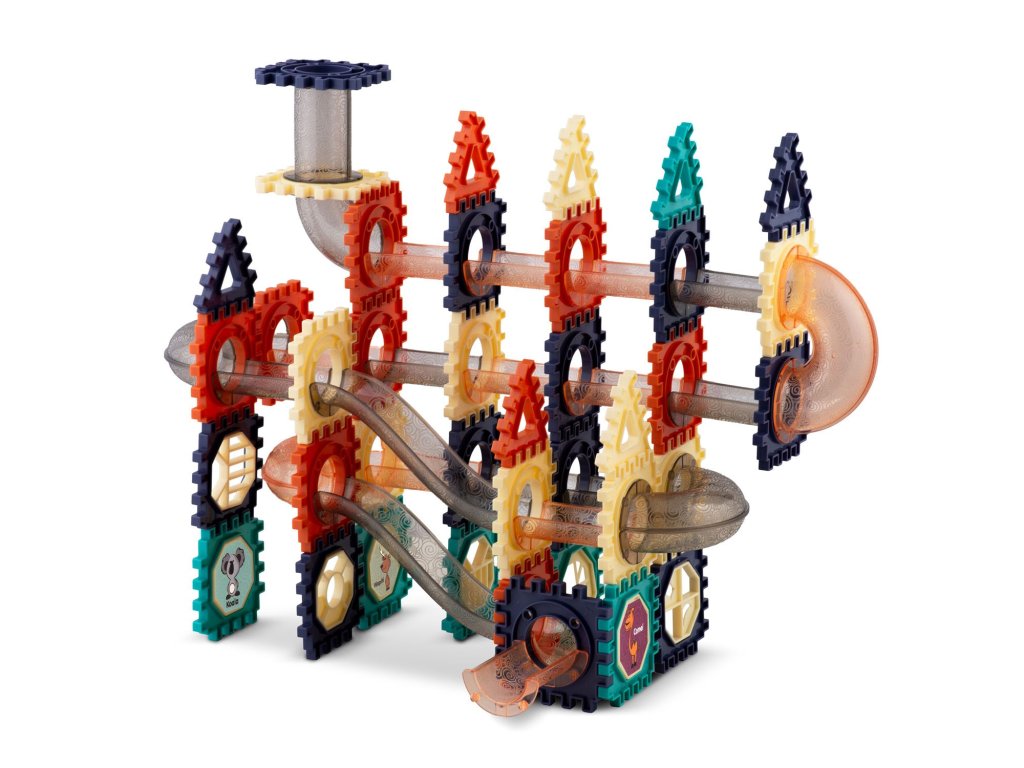 Poticanjem kreativnosti mladih umova, ovi konstrukcijski setovi prenose djecu u svijet, gdje se kuglice natječu i kotrljaju po fascinantnoj stazi na svakom zavoju. Građenje i preuređivanje poboljšava osnovne kognitivne sposobnosti, povećava sposobnosti rješavanja problema i izoštrava prostornu percepciju - i to sve tijekom uzbudljive igre!