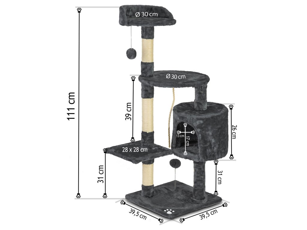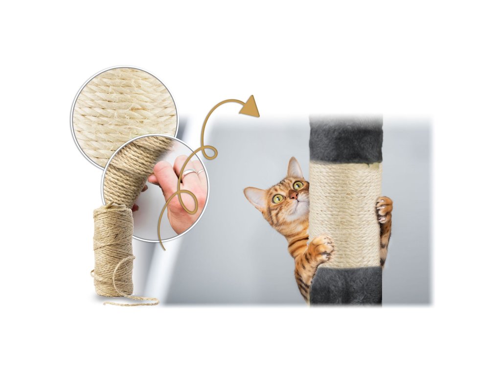 - 5 stupova prekrivenih čvrstim sisal užetom za oštrenje kandži,