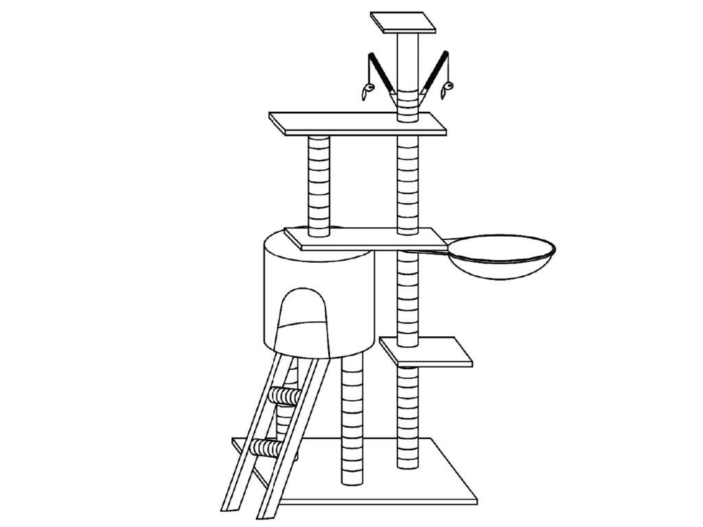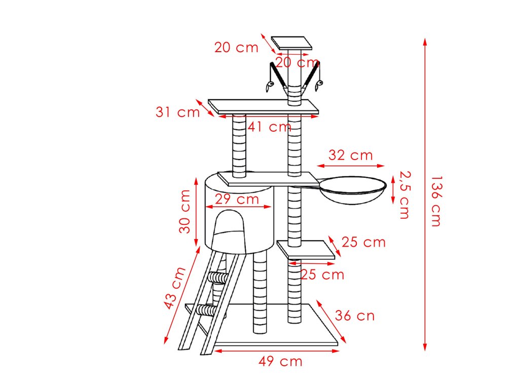 - Visina od vrha kućice do 3. platforme: 35 cm