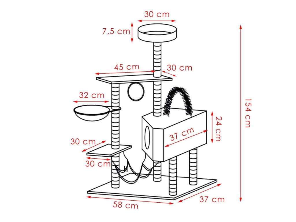 - Kućica: 37 x 19 x 24 cm (duljina x širina x visina)