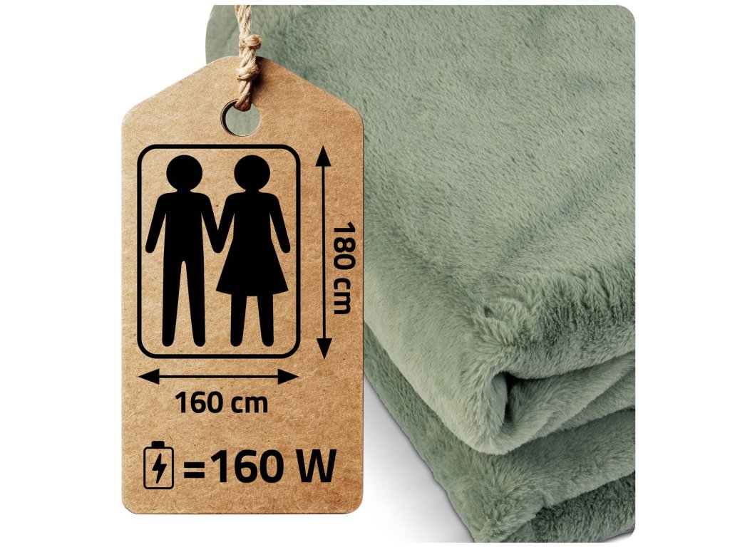 - Pokrivač dimenzija 180 x 160 cm dovoljno je velik da udobno zagrije dvoje ljudi, a njegova debljina (270+220 g/m ) znači da čak i bez uključivanja grijanja nudi ugodnu toplinu. Idealan za hladne večeri provedene zajedno.