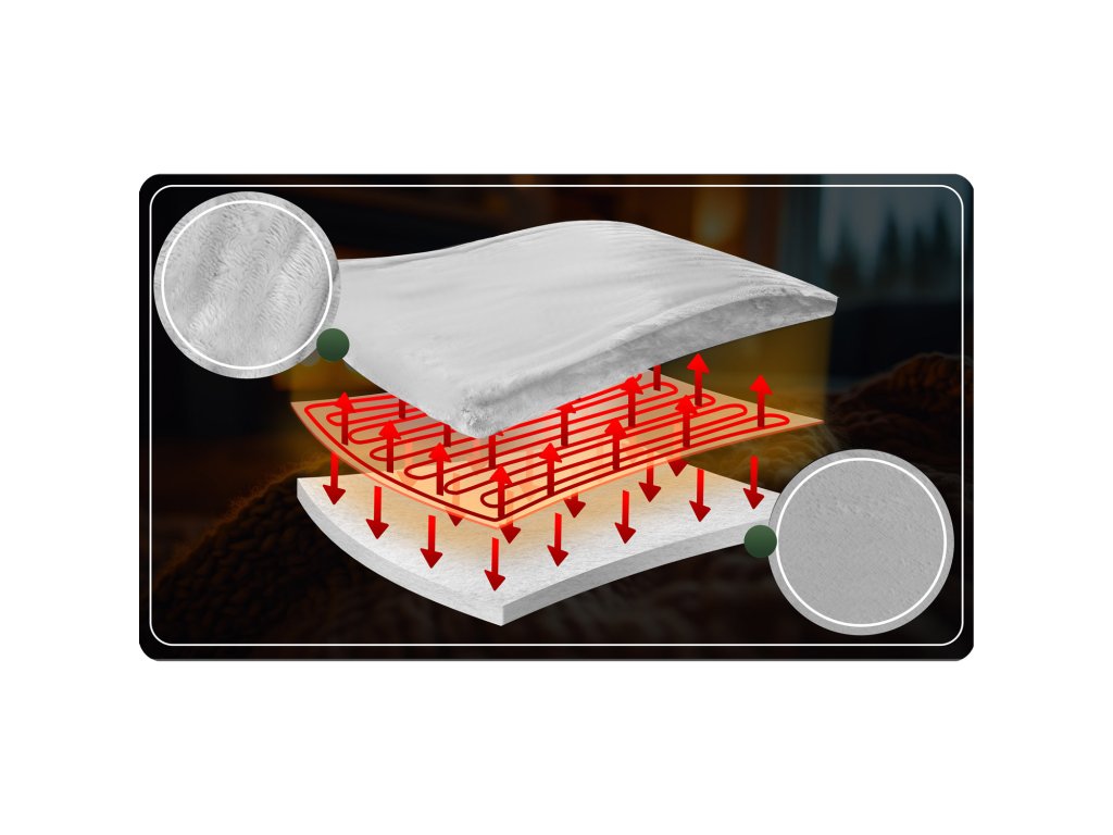 - 10 razina podešavanja omogućuje vam prilagodbu temperature, a debeli materijal ravnomjerno raspodjeljuje toplinu, sprječavajući njezin gubitak.