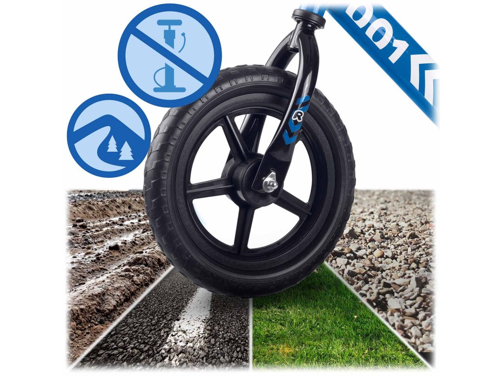 - Kotači: veliki, čvrsti kotači od EVA pjene s izdržljivim gumama, osiguravaju stabilnost i glatku vožnju. Tiha operacija tijekom vožnje znači da bicikl nije neugodan čak ni kod vožnje kod kuće.