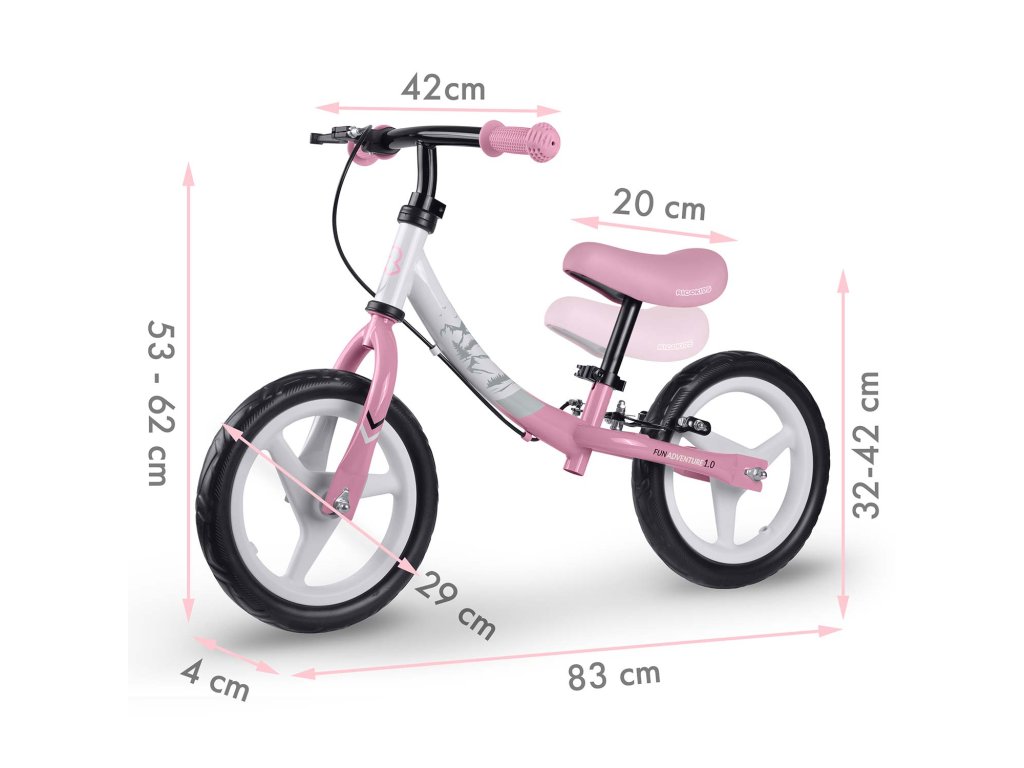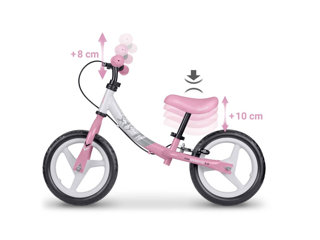 - Duža uporaba: mogućnost podešavanja visine sjedala do 10 cm omogućuje prilagodbu balance bike-a rastu djeteta, zbog čega se može koristiti tijekom to veći vremenski period.