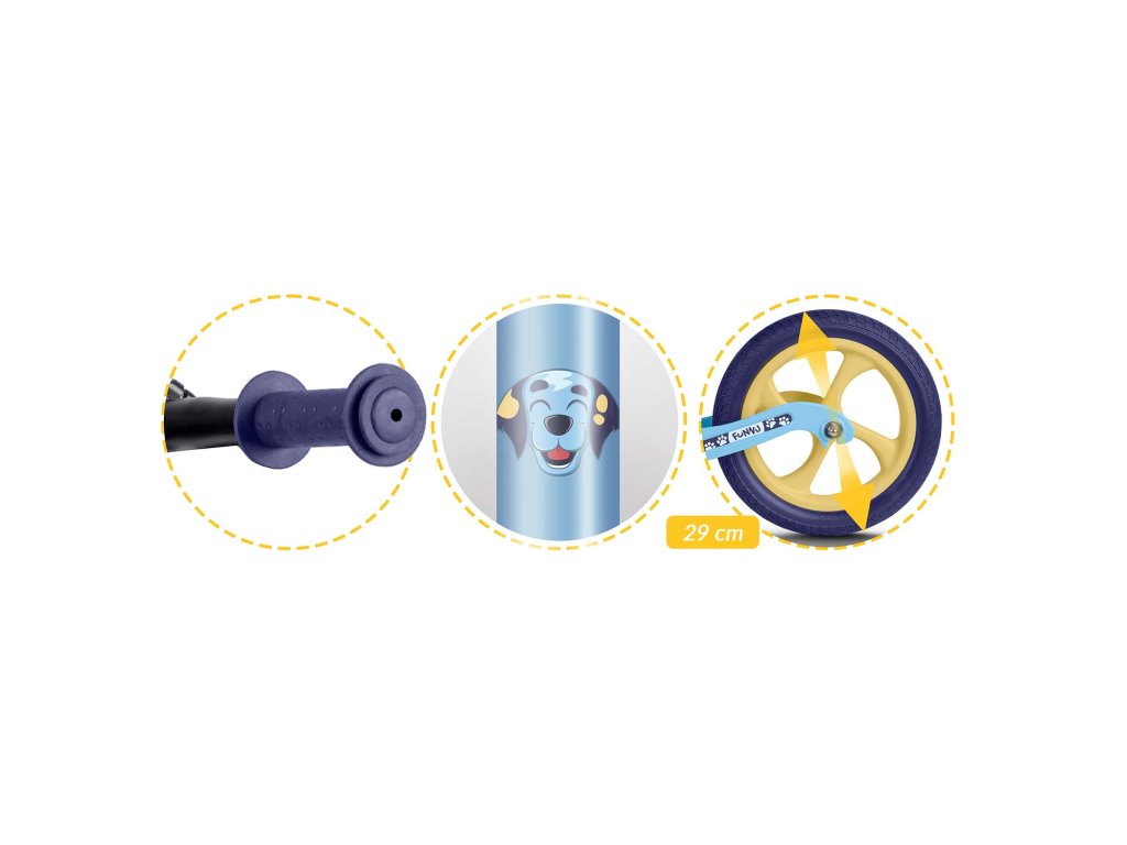 - Dulje vrijeme korištenja: mogućnost podešavanja visine sjedala do 8 cm omogućuje prilagodbu bicikla promjeni visine djeteta, čime bicikl može biti korišten duže vrijeme.