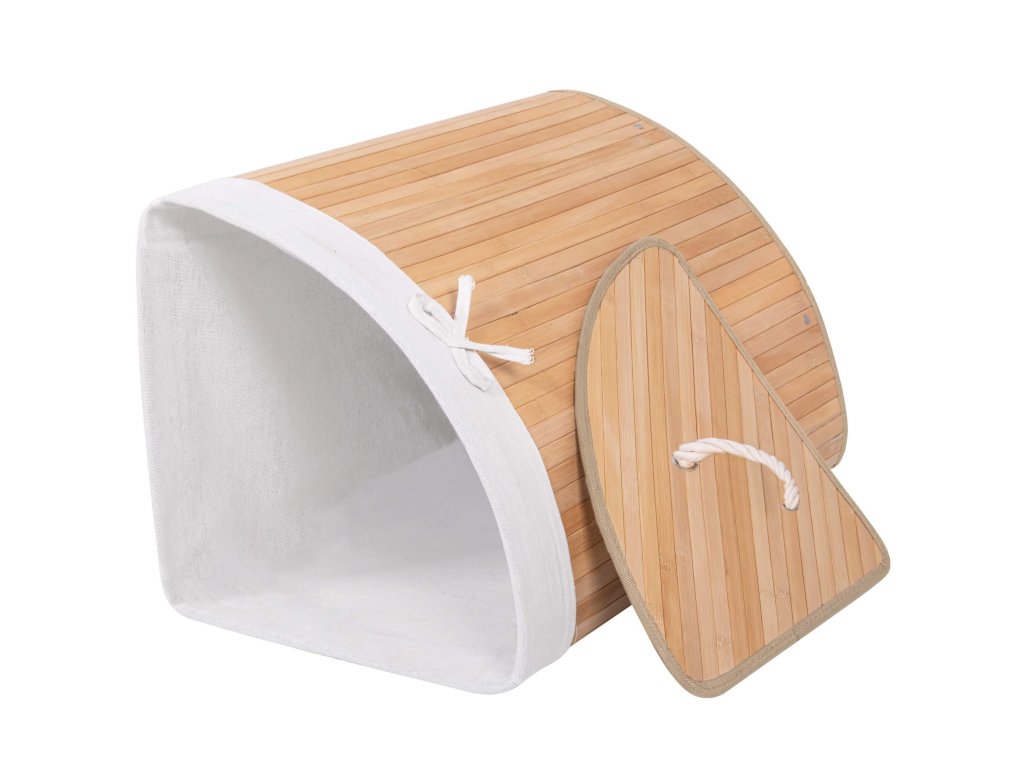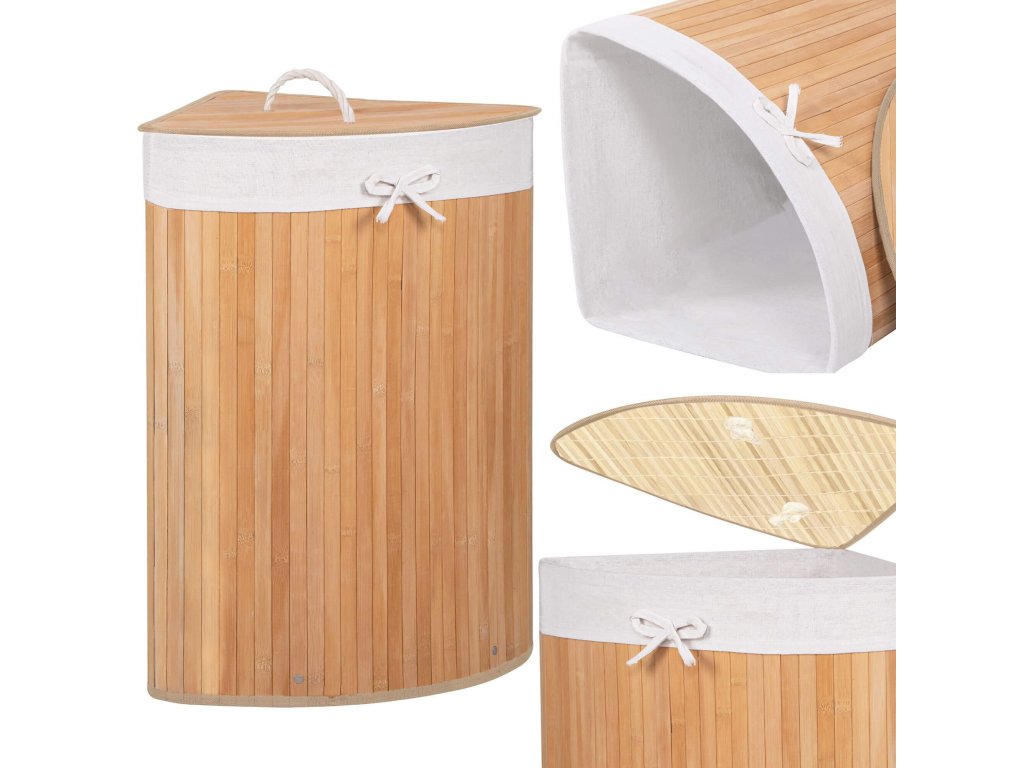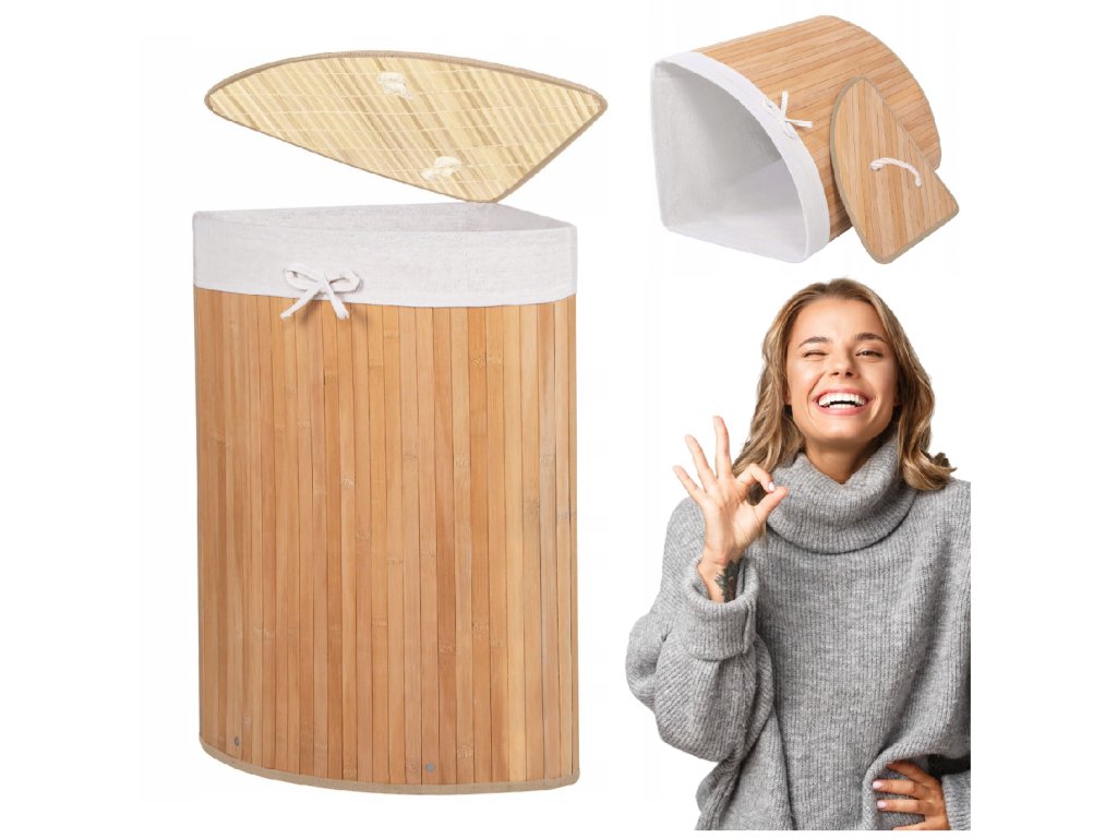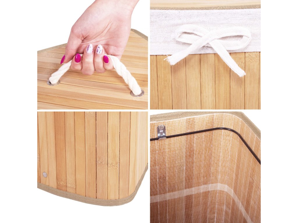 - Elementi u setu (5 kom): bambusovo tijelo, dno od MDF-a, gornje pojačanje od metalne žice, unutrašnjost od tkanine, bambuski poklopac