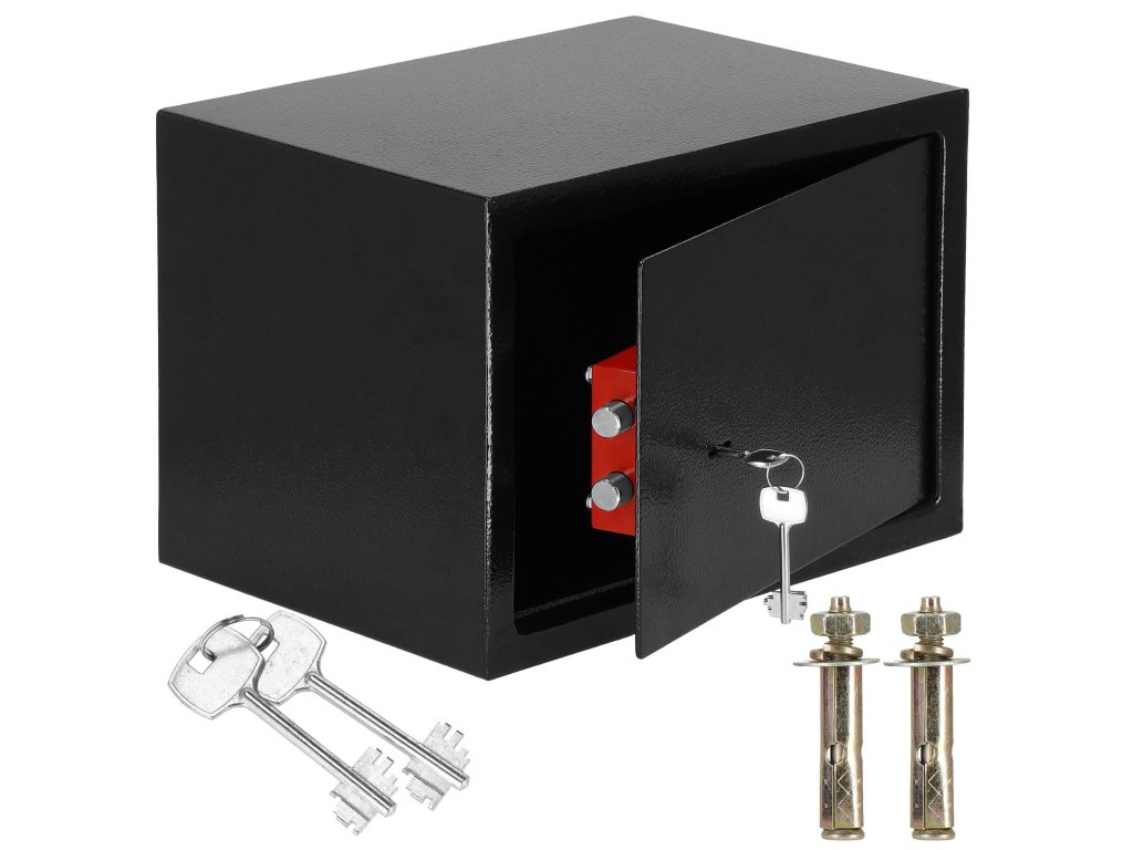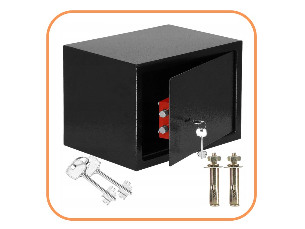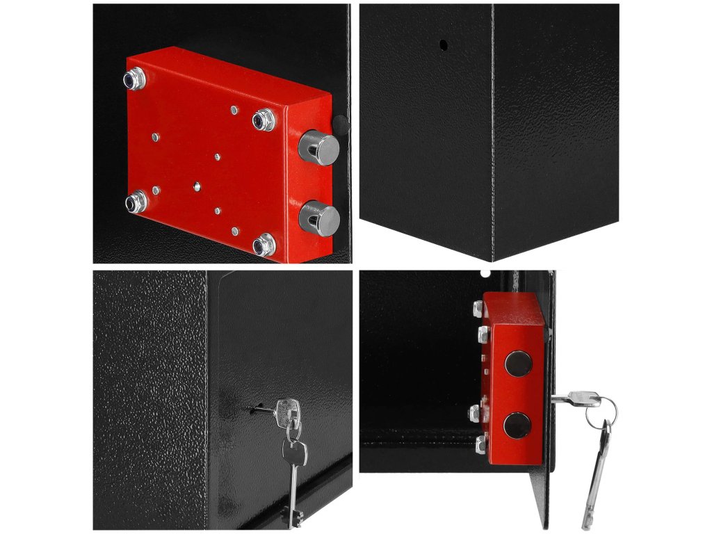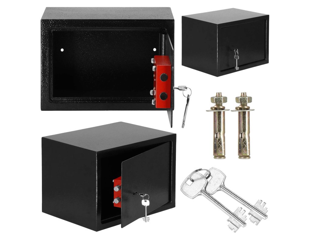 - Osim toga: mogućnost pričvršćivanja na zid i pod (tiplovi u kompletu), filc podloga za prigušivanje unutrašnjosti sefa