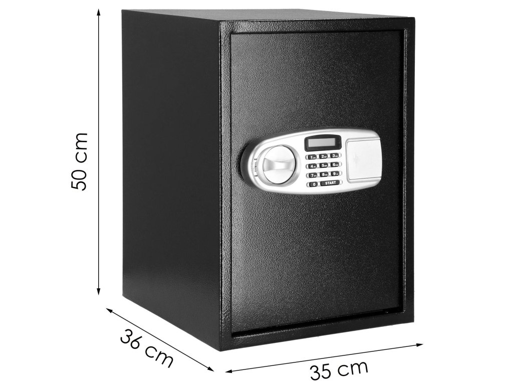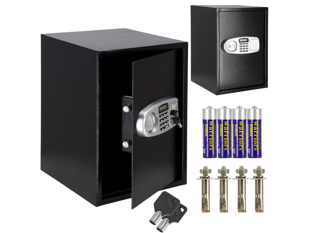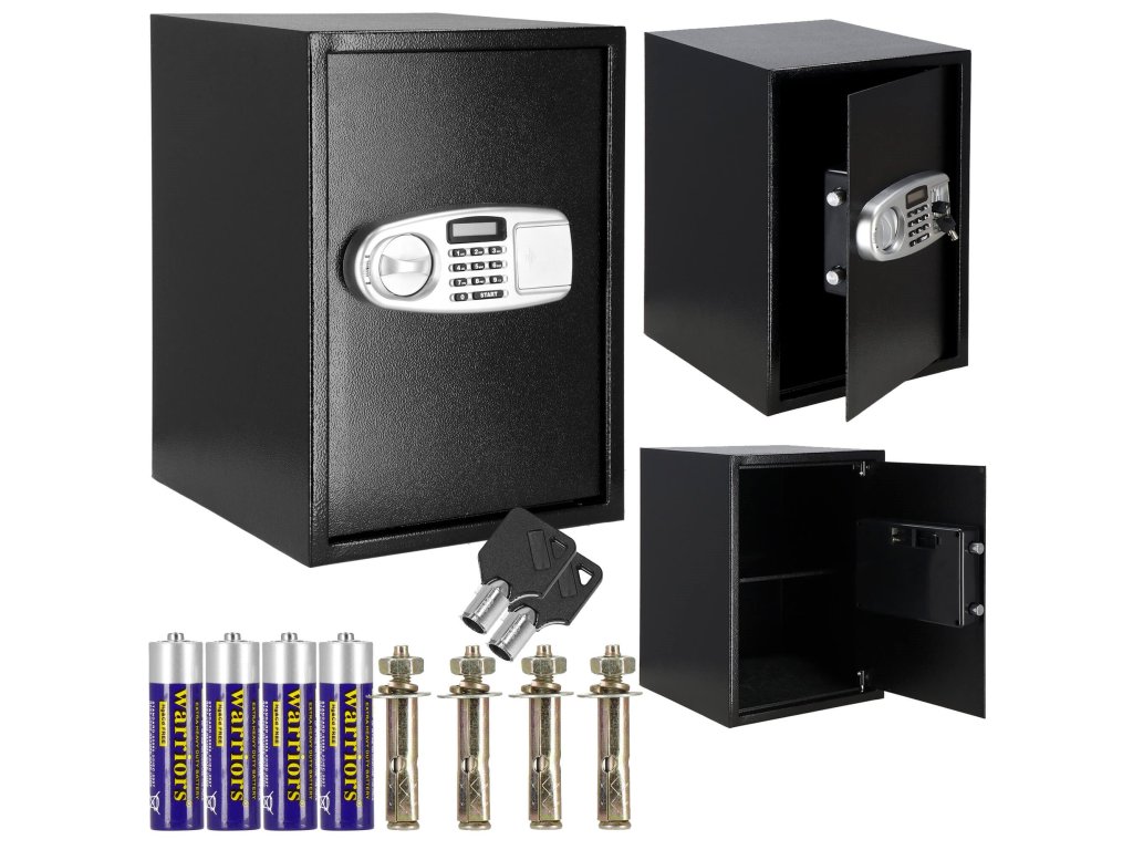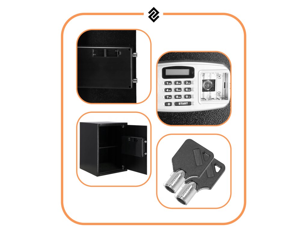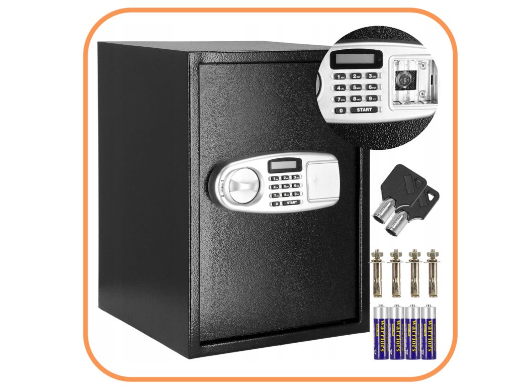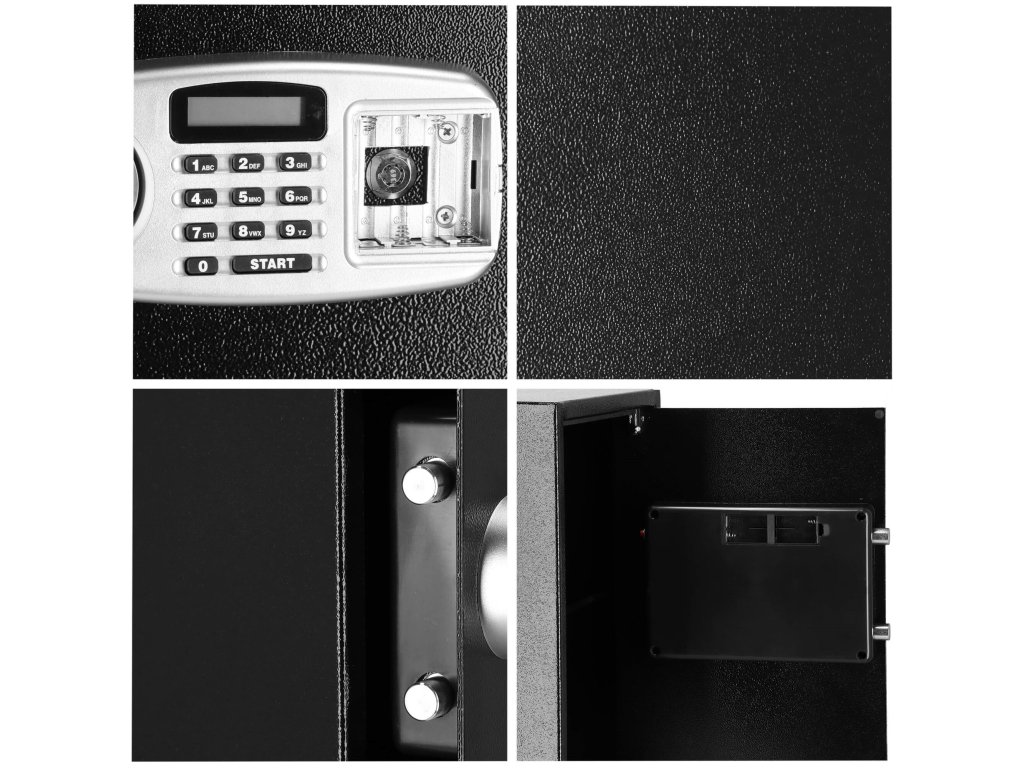 Dodatno: mogućnost montaže na zidove, pod i ormare (tiple uključene), uklonjiva polica unutra, filcana podloga za utišavanje unutrašnjosti sefa