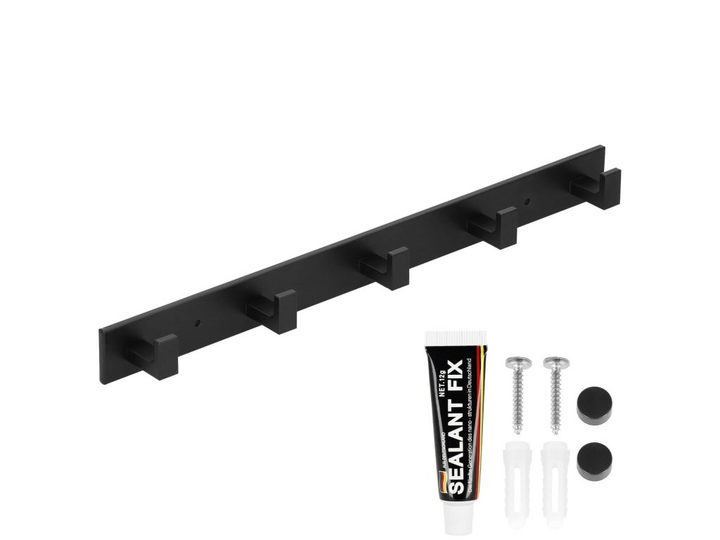 - Set sadrži: vješalica, ljepilo, 2 vijka (dužina 28mm), 2 crne kapice, naljepnice za pomoć pri montaži na ljepilo
