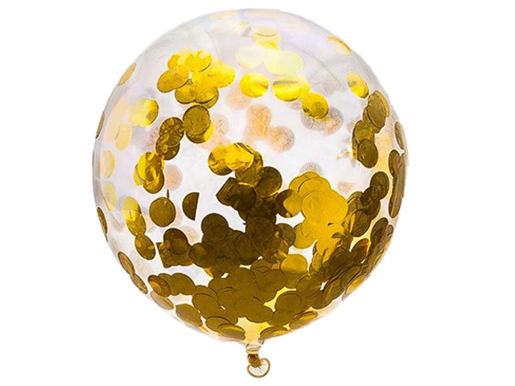 - 1x prozirni balon sa žutim konfetima