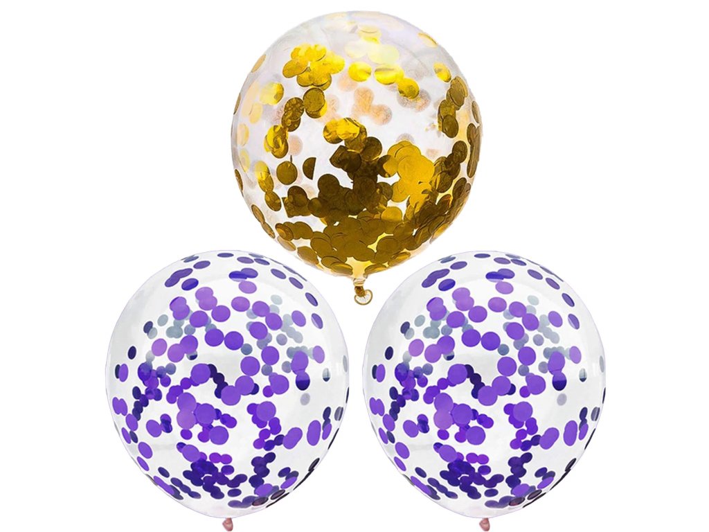 - 2x prozirni balon s ljubičastim konfetima