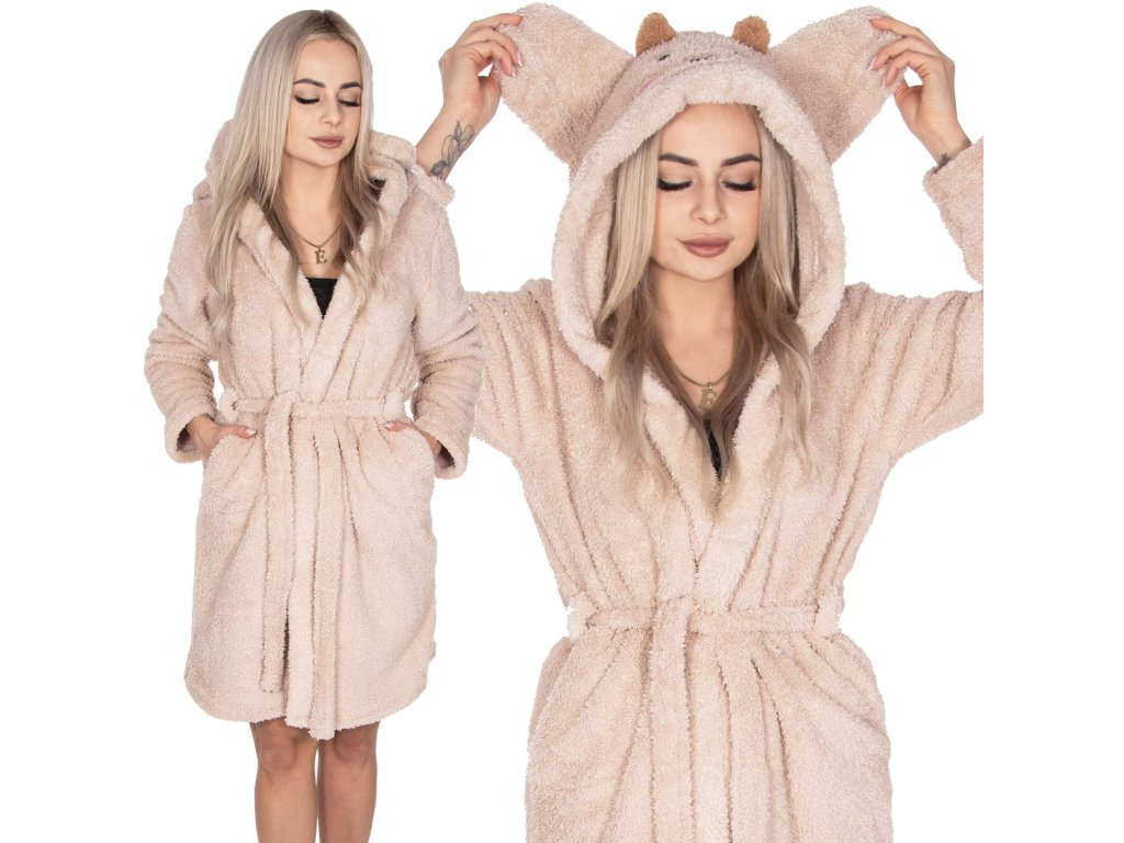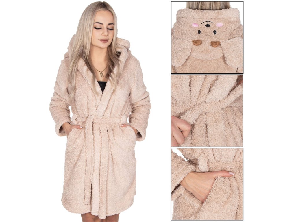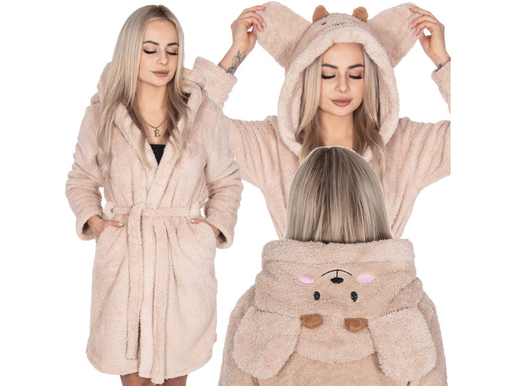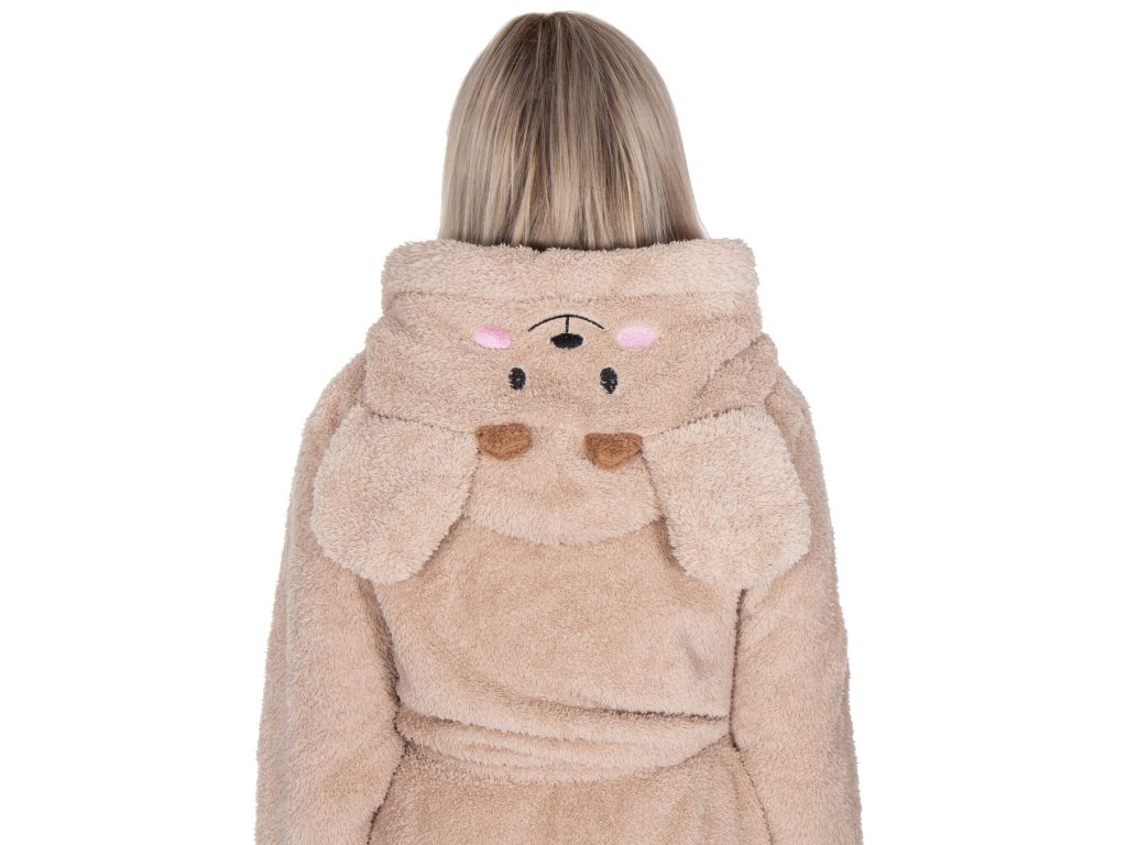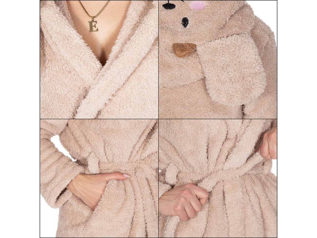 - Prednosti: 2 prostrana džepa, velika kapuljača, pojas za vezanje u struku, kukica za vješanje, uši s licem na kapuljači