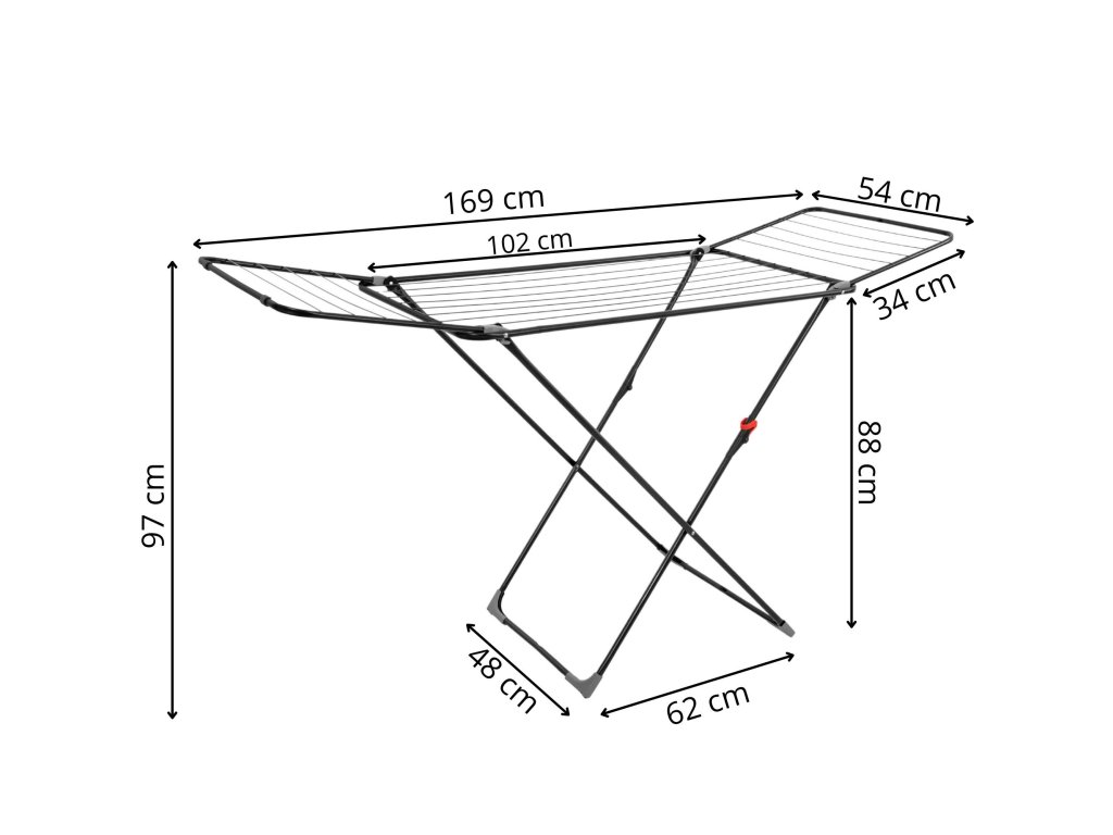 - Dimenzije sklopljene sušilice: 128 x 53,5 x 7 cm