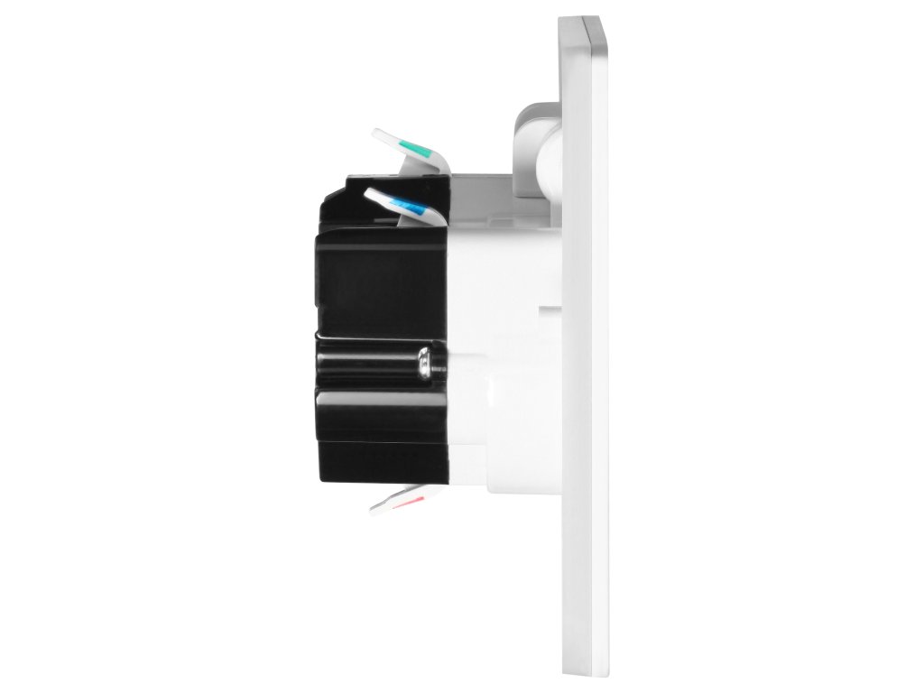 Utičnica je pravokutnog oblika s dimenzijama 166x90x42,4 mm i rubom debljine 6 mm, što olakšava instalaciju.