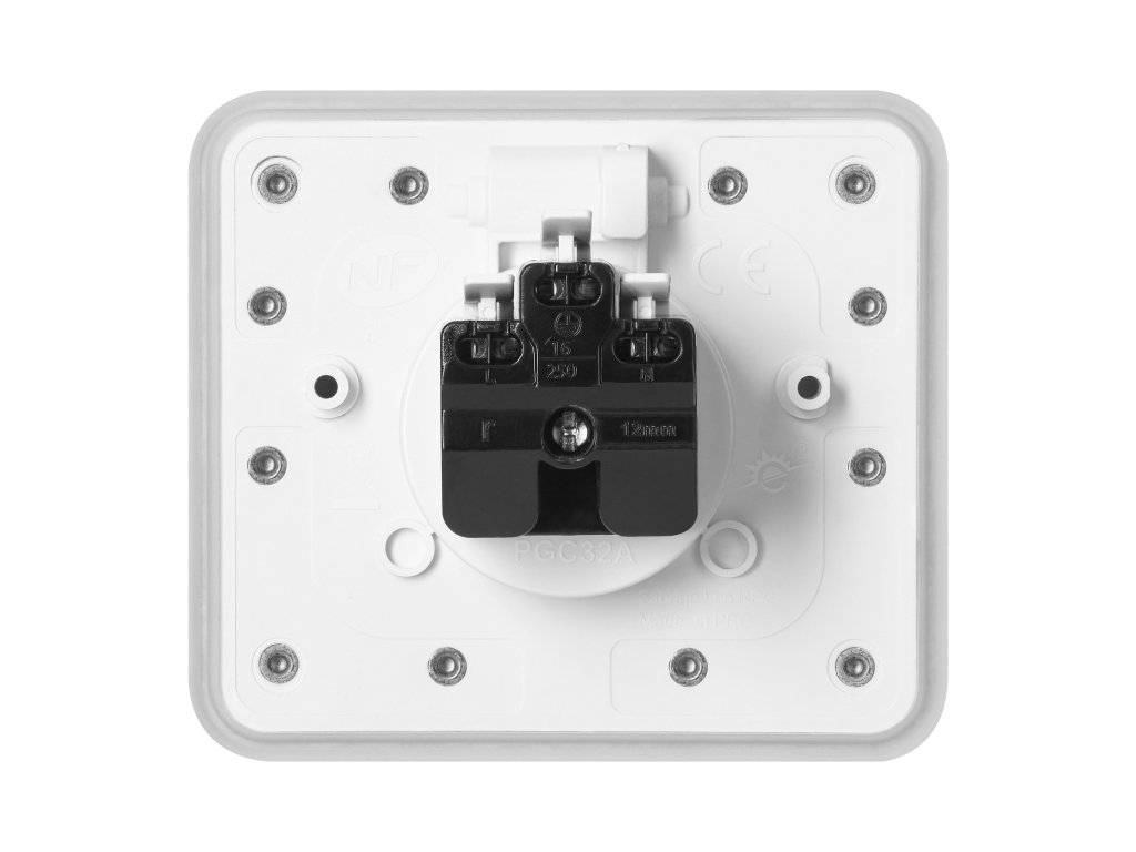 Visoki IP55 osigurava da je proizvod otporan na prašinu i vodene mlazove te se može koristiti dugi niz godina. Utičnica je izrađena od izdržljive cinkove legure i kvalitetne plastike, što jamči pouzdan rad. Bijela izvedba je estetska i minimalistička. Ugrađeni zaštitni poklopac dodatno štiti utičnice od prašine i vlage. Poklopac se otvara pod kutom od 110°, što omogućuje udoban pristup utičnicama.