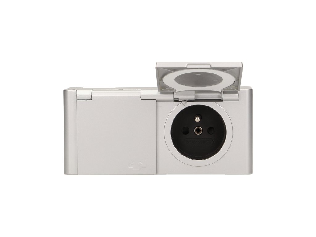 Hermetička utičnica IP44, 2x2P+E, srebrna