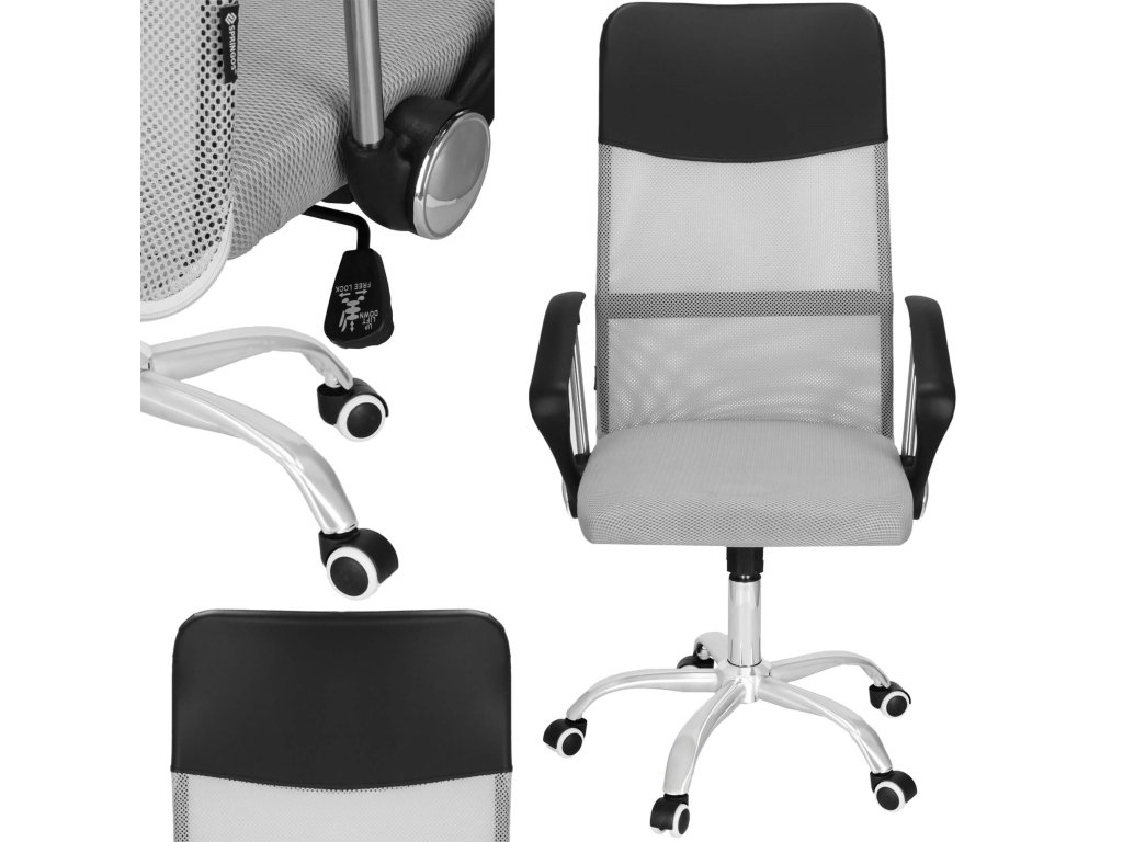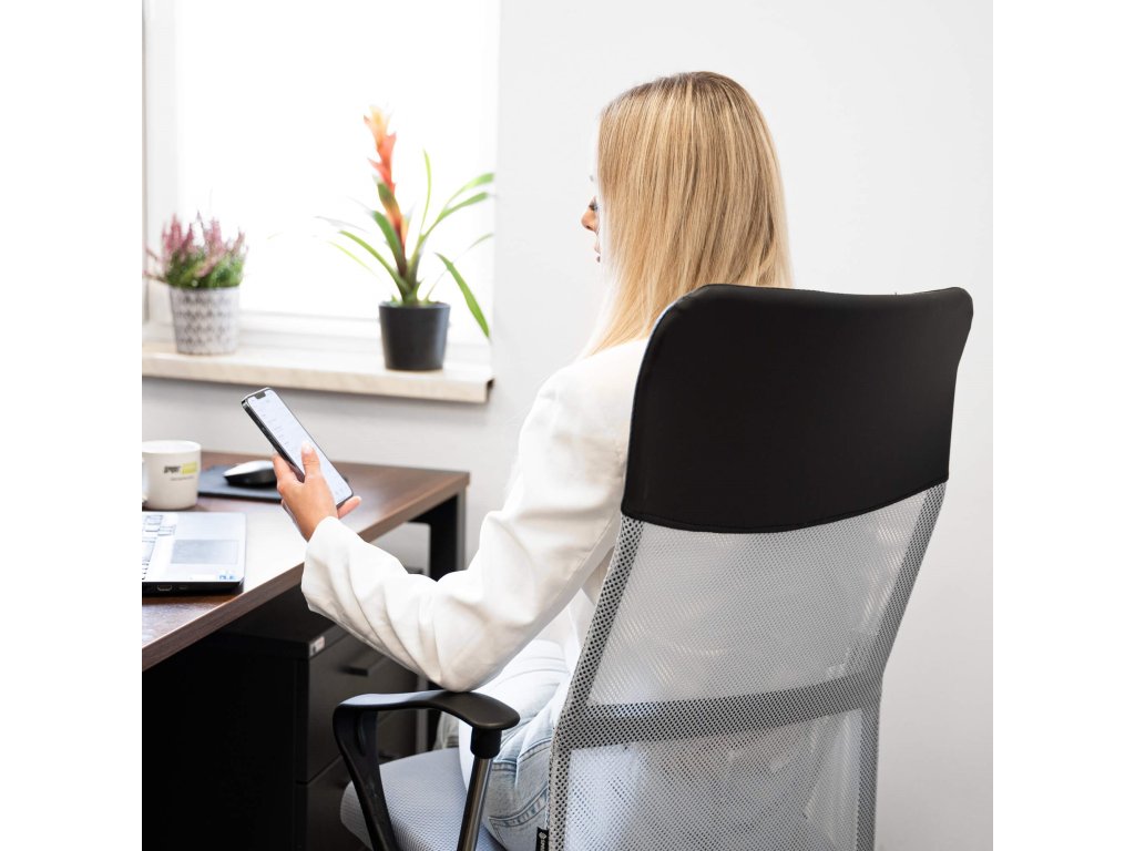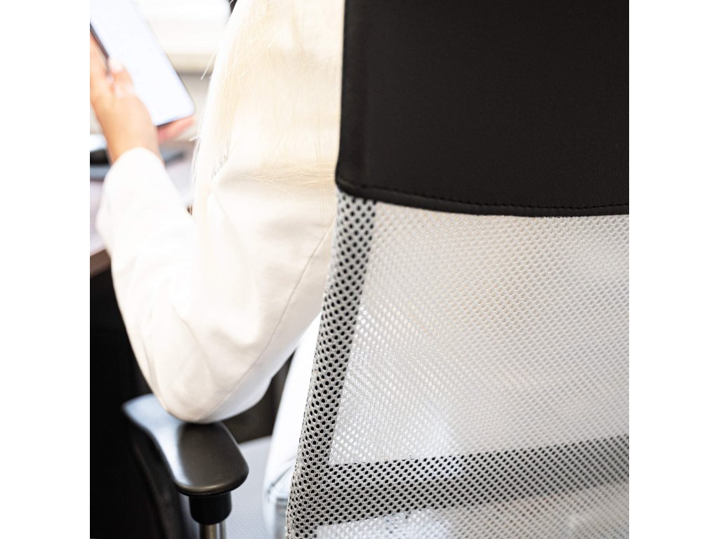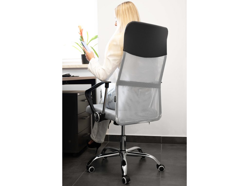 - Sjedalo i tkanina naslona u svjetlosivoj boji, eko koža na gornjem dijelu naslona i rukohvati u crnoj boji