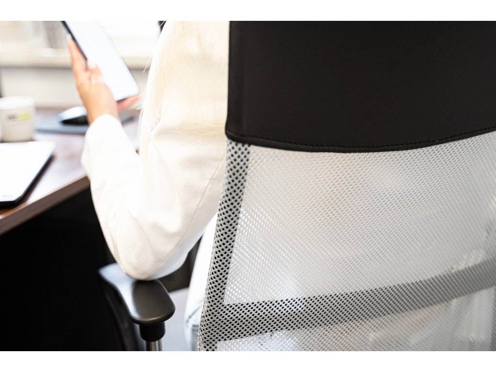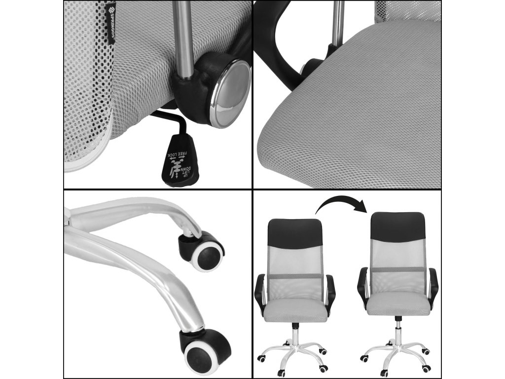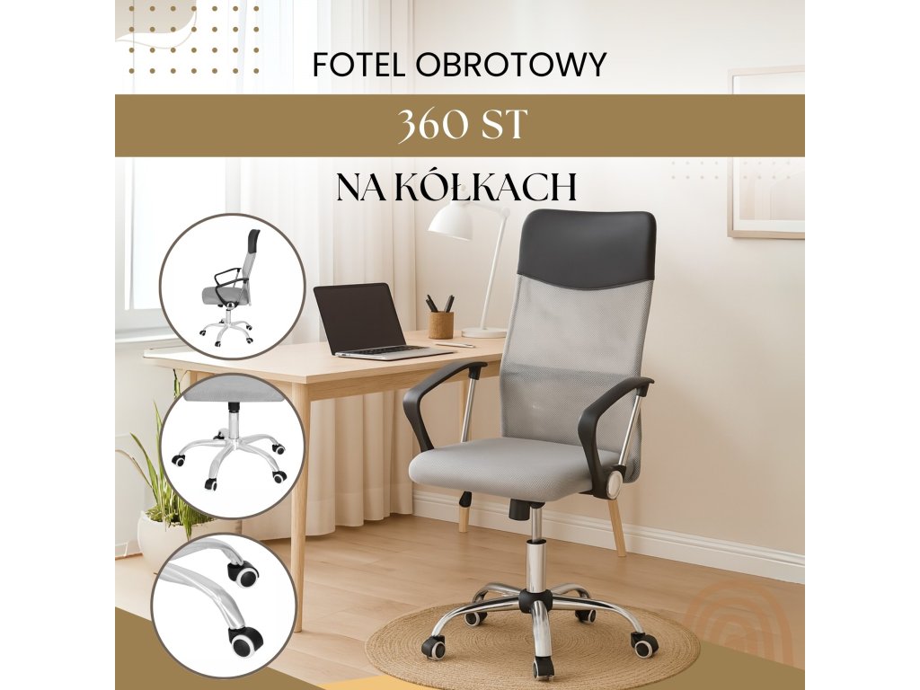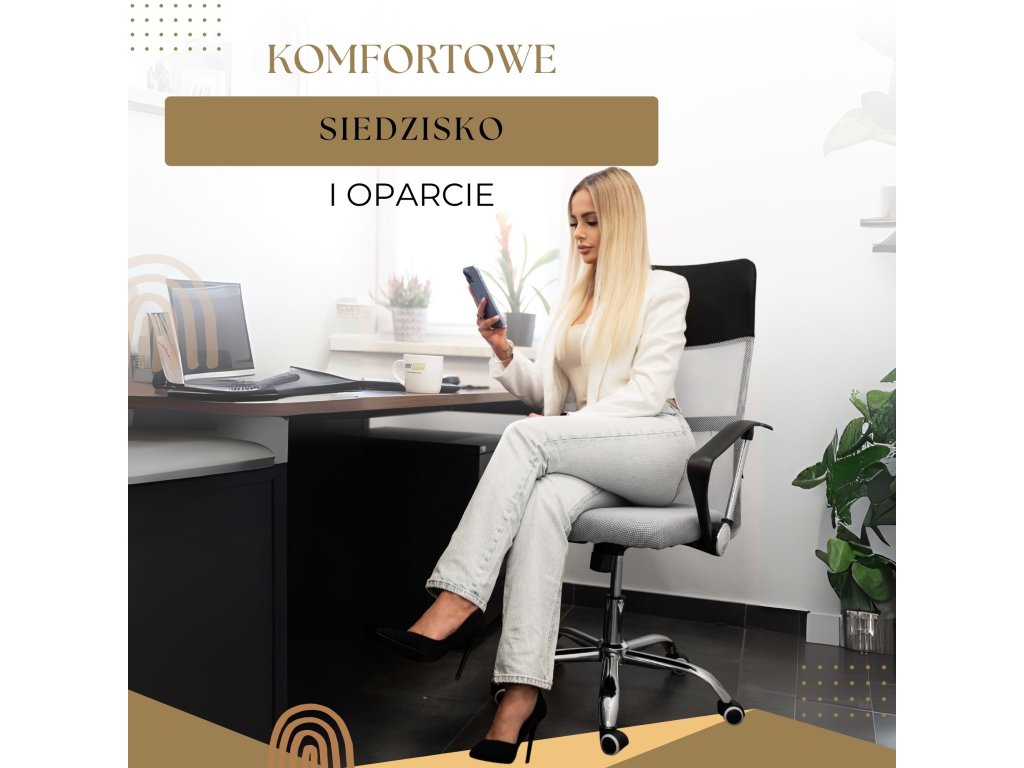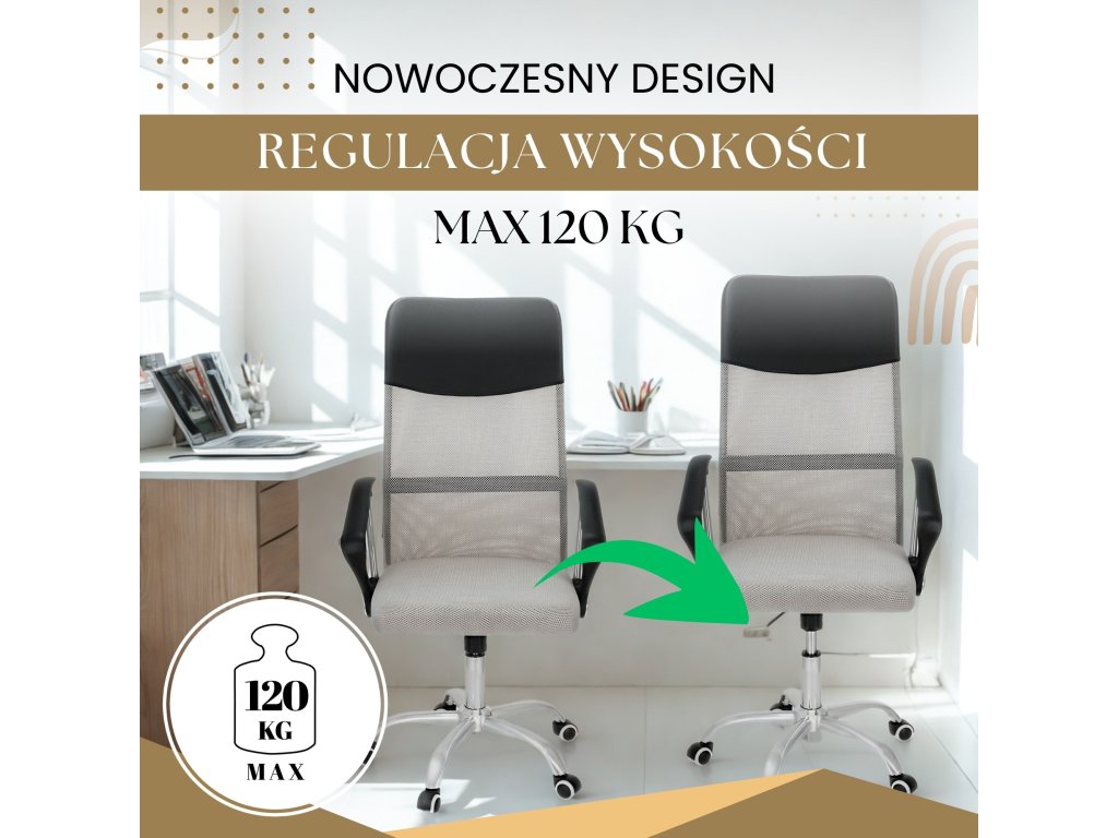 - Sjedalo i tkanina naslona u svjetlosivoj boji, eko koža na gornjem dijelu naslona i rukohvati u crnoj boji
