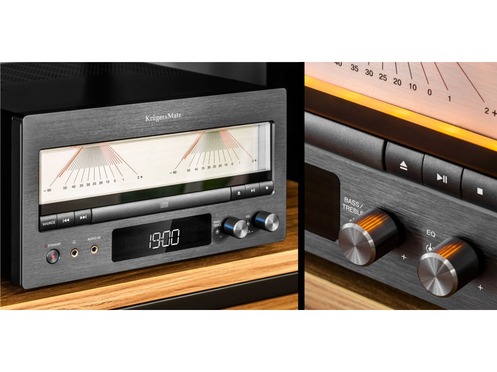 KM1995-A impresionira ne samo visokom kvalitetom zvuka, već i elegancijom koja osigurava savršenu estetiku u svakom interijeru. Jedinstveni retro dojam dodatno naglašava analogni mjerač razine zvuka na prednjoj strani.