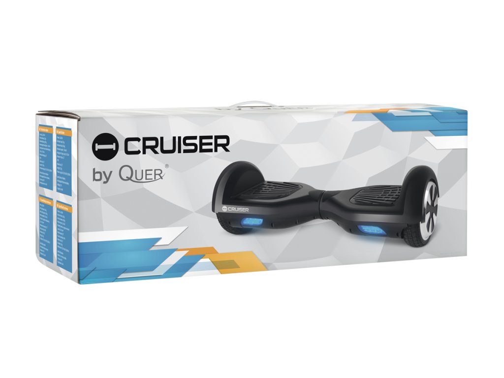 Cruiser by Quer je inovativni skateboard koji spaja ugodno s korisnim i od prvog trenutka postanevaš neizostavni pratitelj. Možete ga ponijeti sa sobom na dugu šetnju, a ako se umorite, samo ga uključite i zabava počinje. Plave LED lampice vas obavještavaju kada je uređaj spreman za uporabu. S potpuno napunjenom baterijom možete prijeći udaljenost do 20 km. Najmoderniji skateboard Cruiser by Quer dizajniran je tako da vam tijekom vožnje pruža maksimalnu sigurnost. Kotači od 6,5" jamče glatki pokret i izvrsno prianjanje, dok vam protuklizne podloge postavljene na čvrstom crnom kućištu daju osjećaj sigurnosti pri vožnji. Uređaj možete upravljati ravnotežom tijela. Kretanjem nogu i položajem tijela možete odlučiti želite li ići naprijed, nazad, skrenuti, usporiti ili potpuno stati. A ako se želite malo izdivljati, možete se početi okretati oko svoje osi - vrti se na mjestu. Dopustite si modernu šetnju.