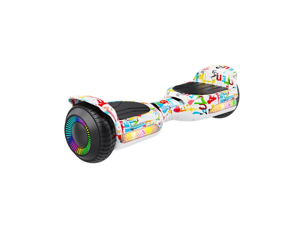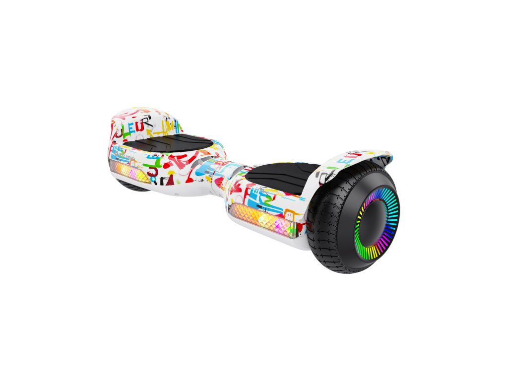 Električni Cruiser Paint skateboard opremljen je velikim kotačima od 6,5", od kojih svaki pokreće motor od 120 W. To vam omogućuje ubrzanje do 10 km/h i, što je najvažnije, vožnju uzbrdo s maksimalnim nagibom do 8°.