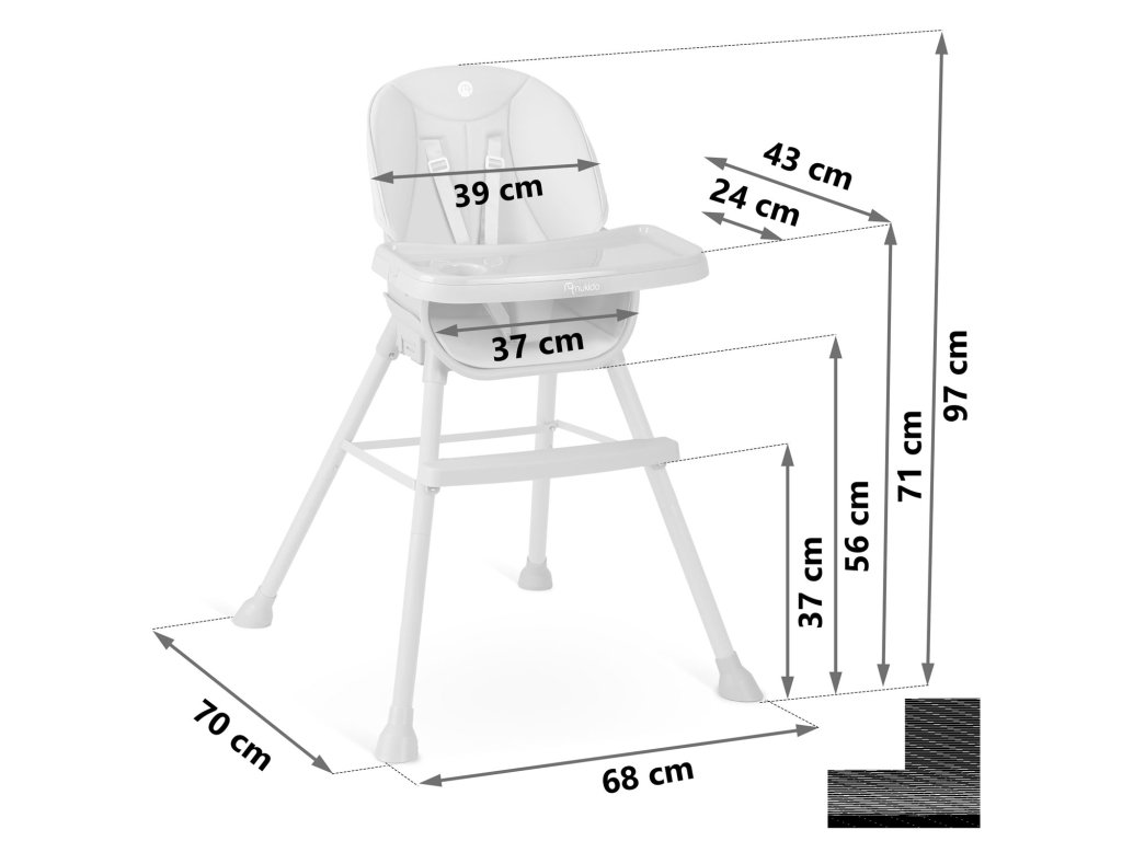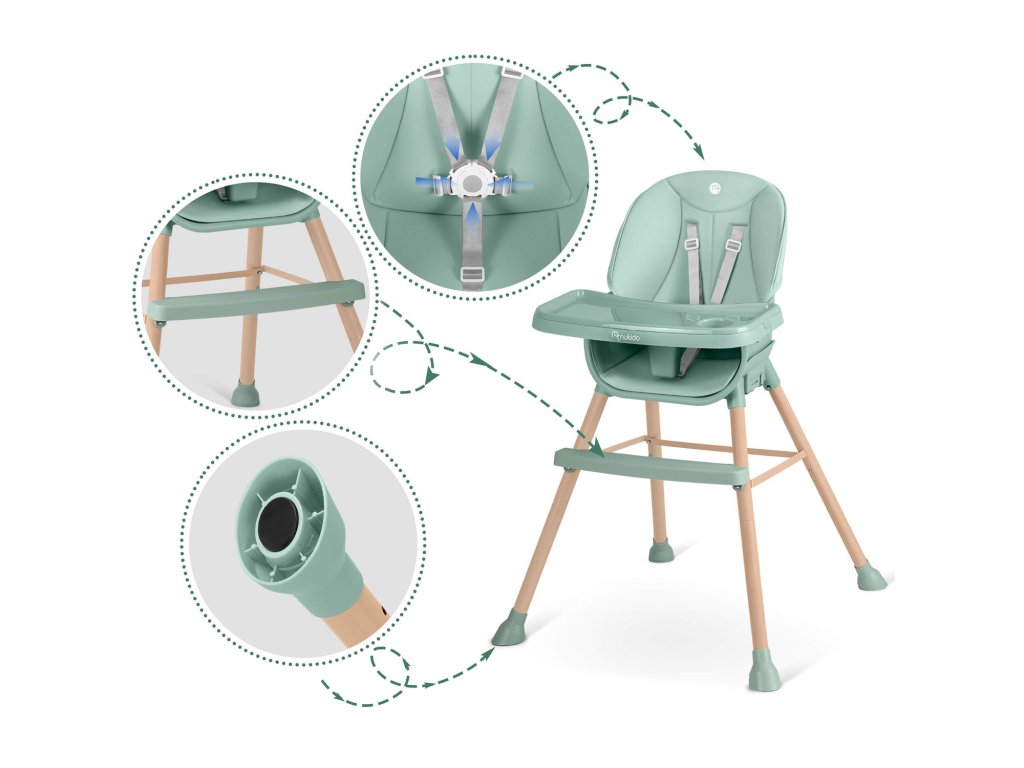 Stolica omogućuje slobodno podešavanje udaljenosti police od djeteta. Može se u svakom trenutku potpuno demontirati.