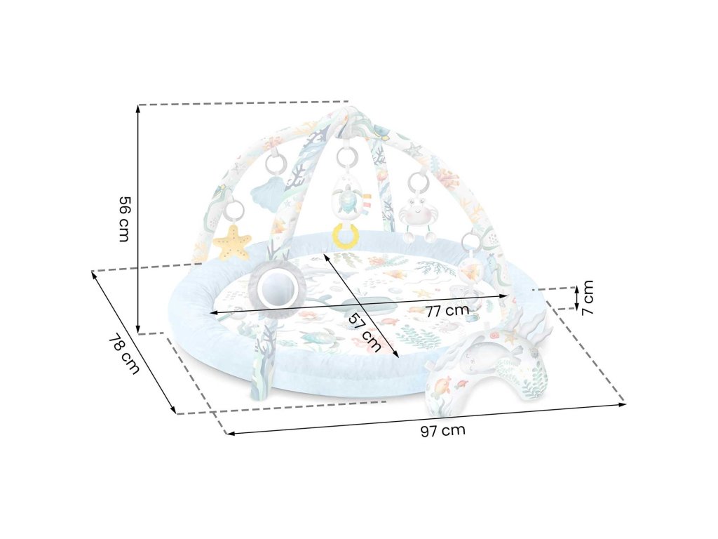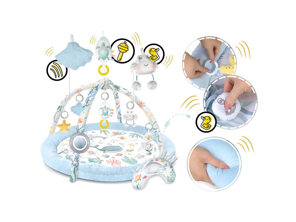 - set sadrži: podlogu, ugrađeni kokon, 2 trake, 7 multifunkcionalnih igračaka,