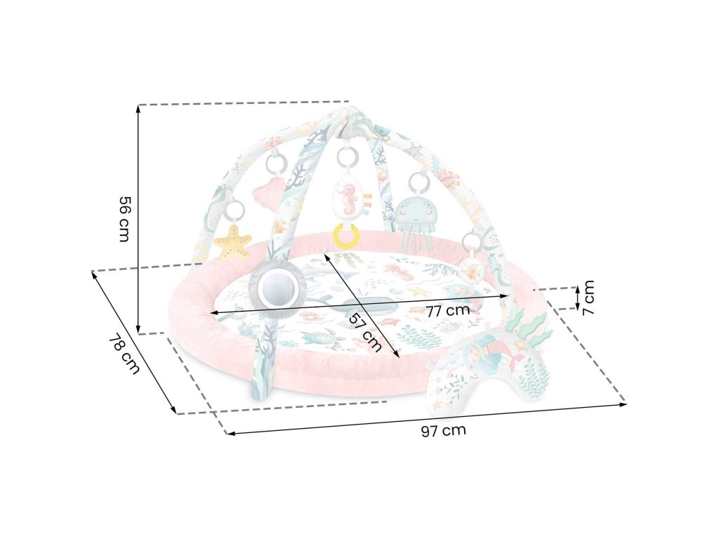 - set sadrži: prostirku, ugrađeni povoj, 2 trake, 7 višenamjenskih igračaka,